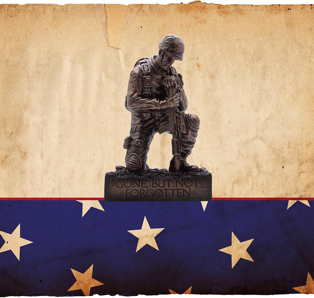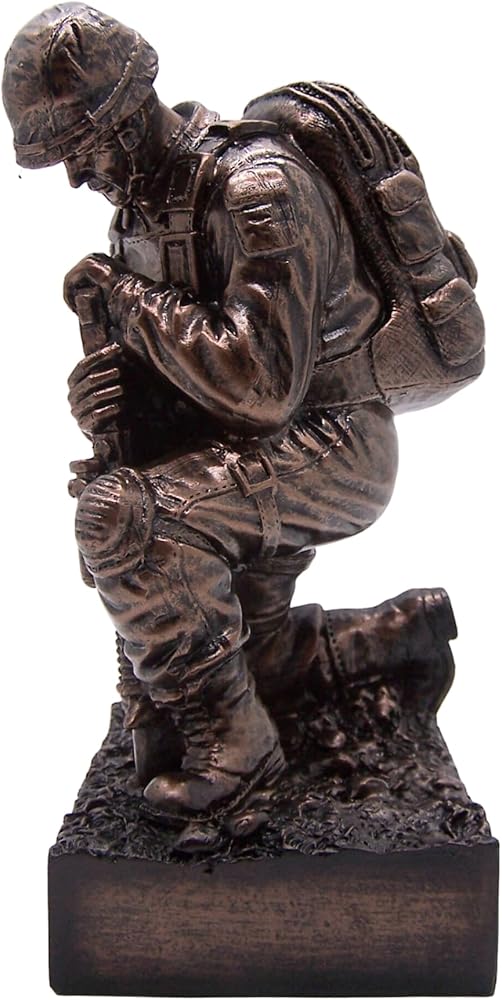 جندي التذكاري الركوع مع تمثال بندقية ، مثالي للعرض الداخلي أو في الهواء الطلق ، ديكور الوطني الوطني والمكاتب ، 8.5 بوصة