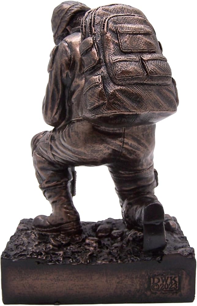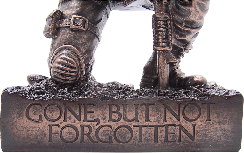 - تمثال يضم جنديًا راكعًا مع بندقية "ذهب ، ولكن لم ينس" في النهاية البرونزية العتيقة