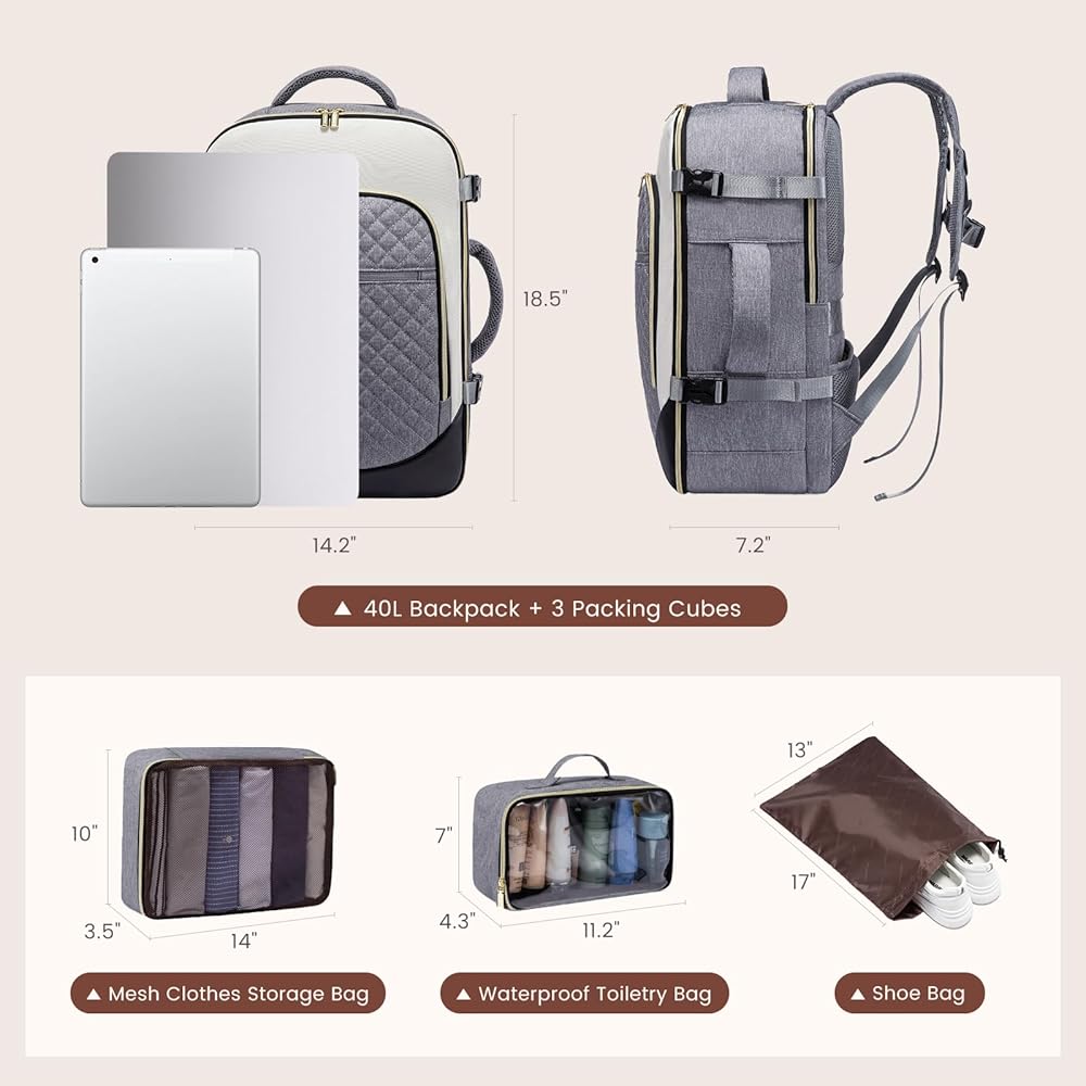 • 【سعة كبيرة ومتعددة الجيبات】 يقيس الحمل الكبير على ظهر حقيبة الظهر 14.2*7.2*18.5 بوصة ويزن 1.2 كجم (2.7 رطل) ، تحتوي حقيبة السفر الكبيرة الحجم هذه على ميزة قابلة للتوسيع لتزويدك بسعة تعبئة أكبر تصل إلى 40 لترًا. مع 3 مقصورات كبيرة وجيب مخصص لجهاز كمبيوتر محمول 17 بوصة ، سيفصل حقيبة الظهر للسفر بشكل مريح وتنظيم ممتلكاتك ، مما يجعل من السهل تعبئة الأساسيات في رحلة لمدة 3-7 أيام!