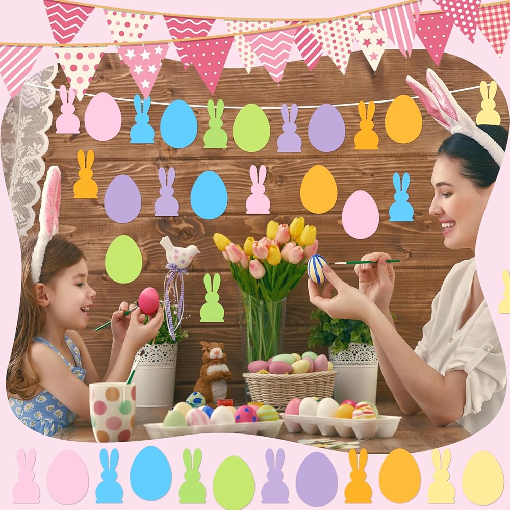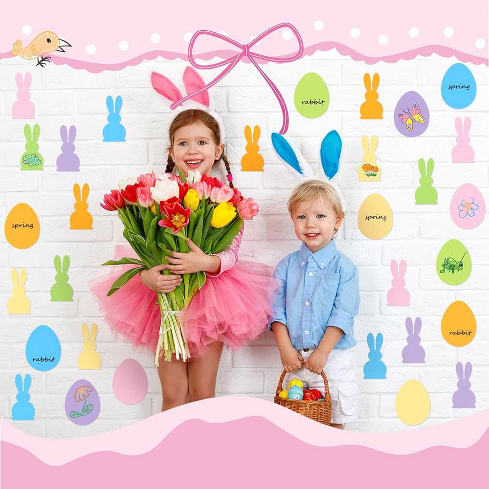 Our bunny egg cutouts for bulletin board adopt classic shape and solid colors, suitable for various parties, such as spring theme parties, Thanksgiving parties and more.