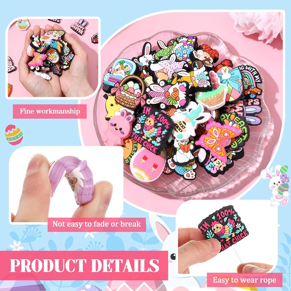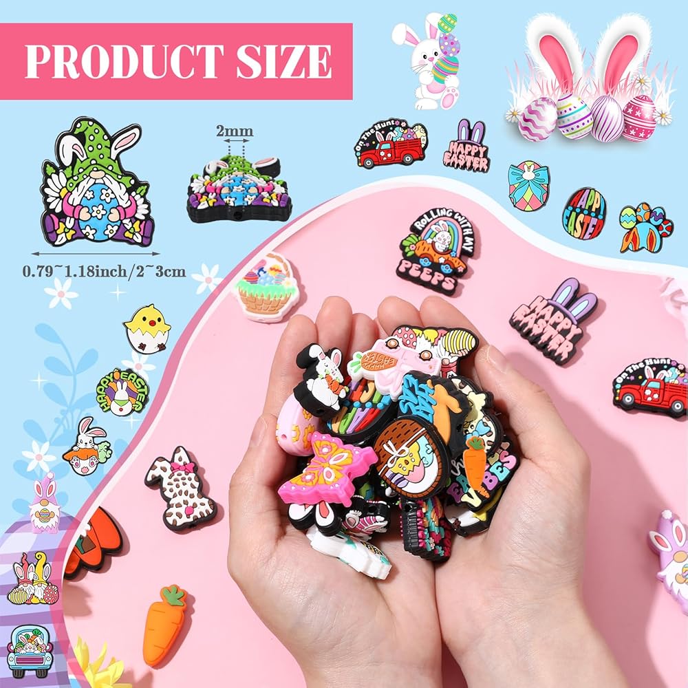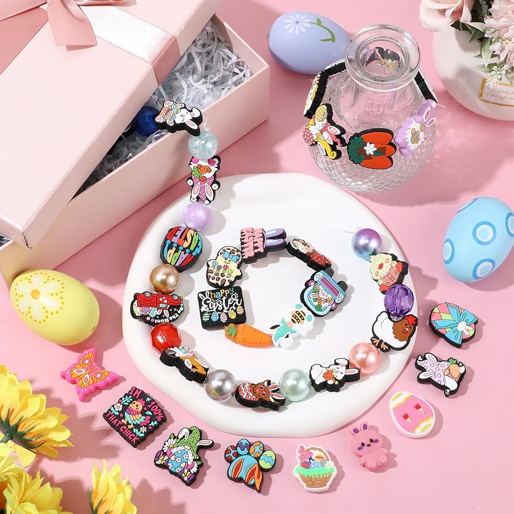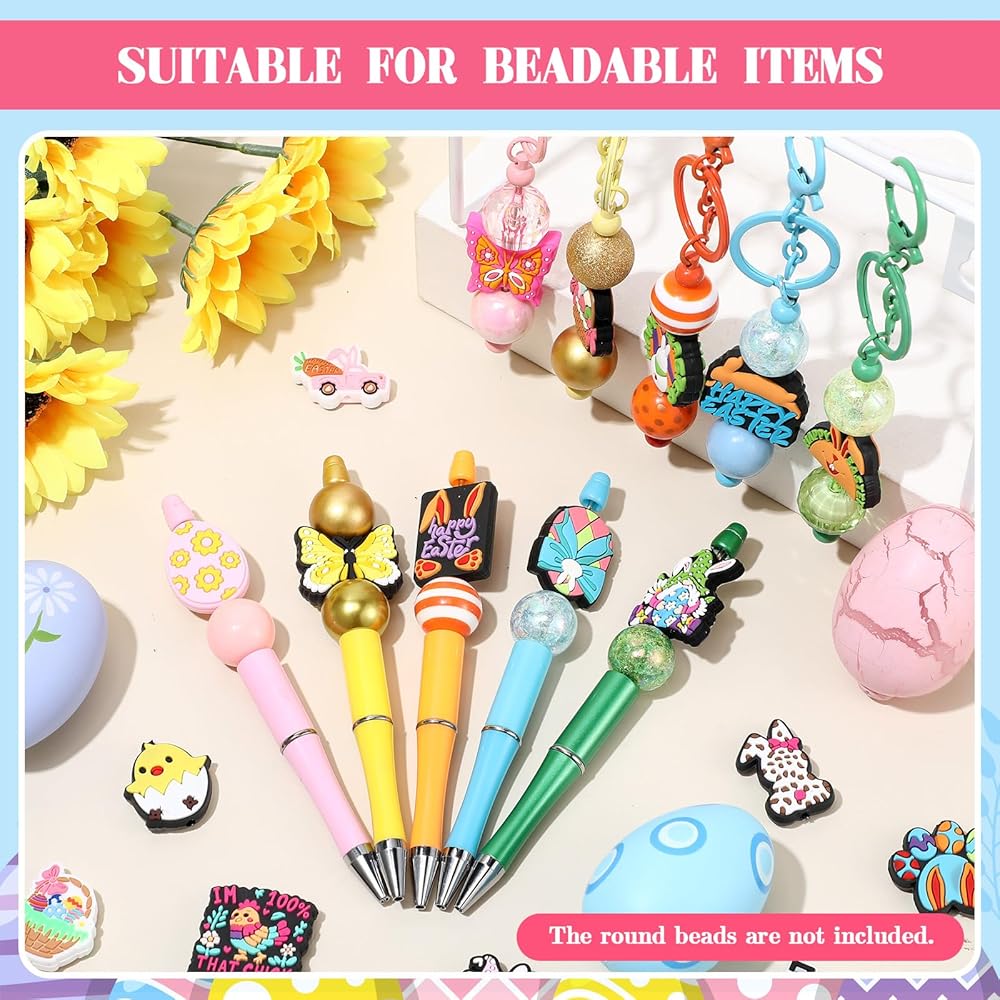 • Package Includes: you'll receive 50 pieces silicone focal beads of different Easter styles, adding charms to your handmade keychains, bracelet, necklace, beadable pens or other handmade crafts, bringing you fun of DIY