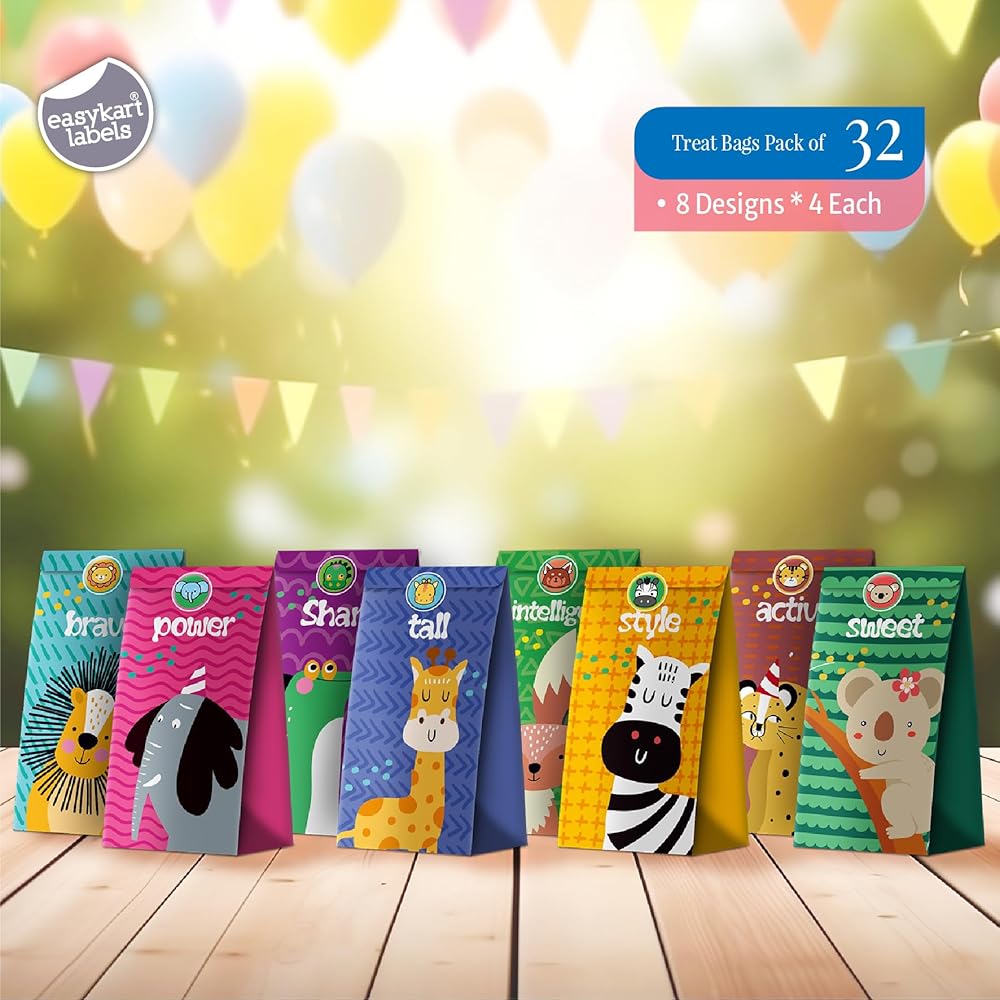 • مجموعة مريحة من 32: مع 32 حقيبة مدرجة في كل مجموعة ، 8 موضوع حيواني مختلف ، كل نمط يحتوي على 4 قطع ، سيكون لديك الكثير للالتفاف لجميع ضيوف الحفلات. وفر الوقت والجهد مع هذه الحزمة المريحة ، مع ضمان مغادرة الجميع بابتسامة وحقيبة مليئة بالعلاجات.