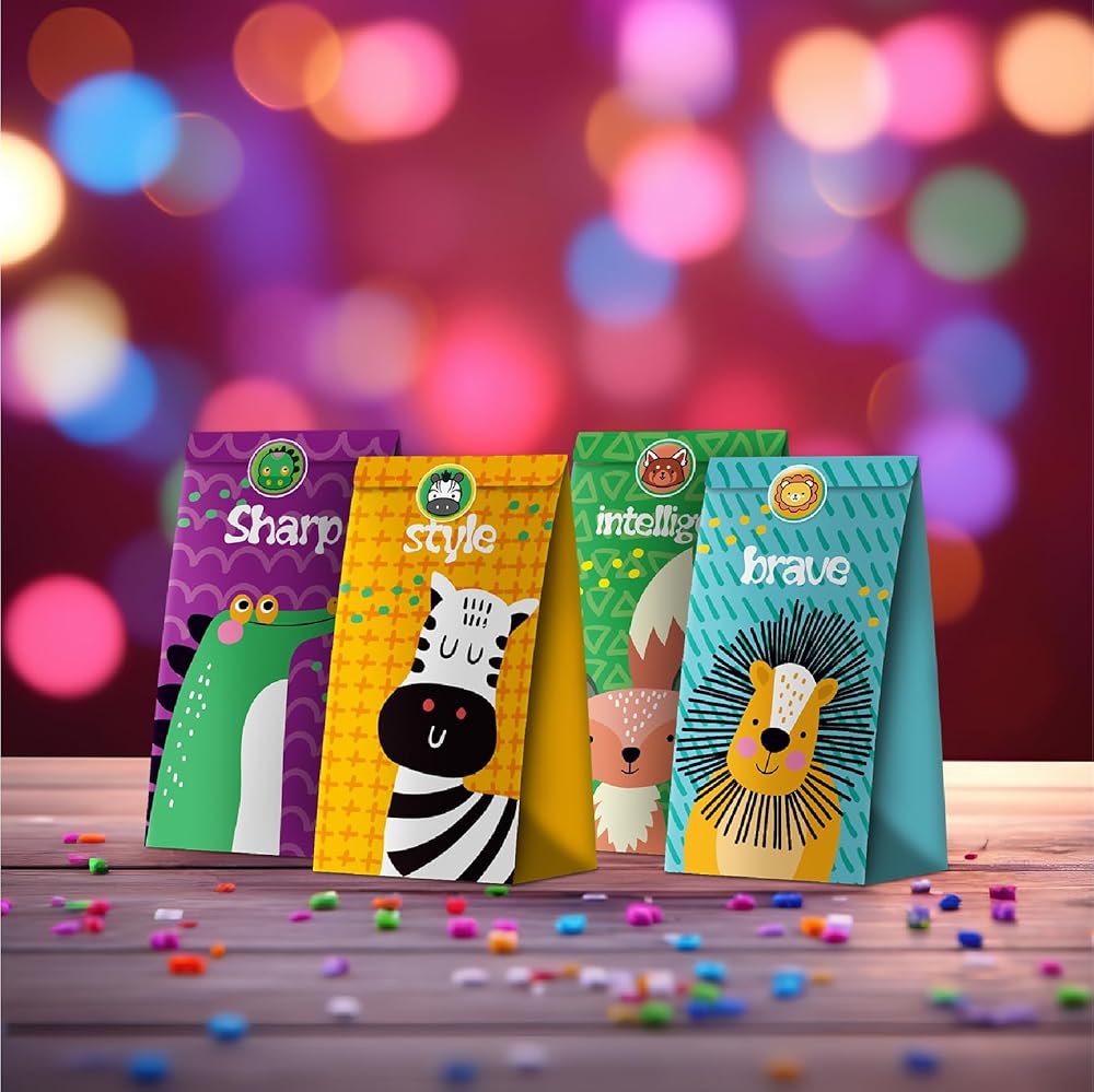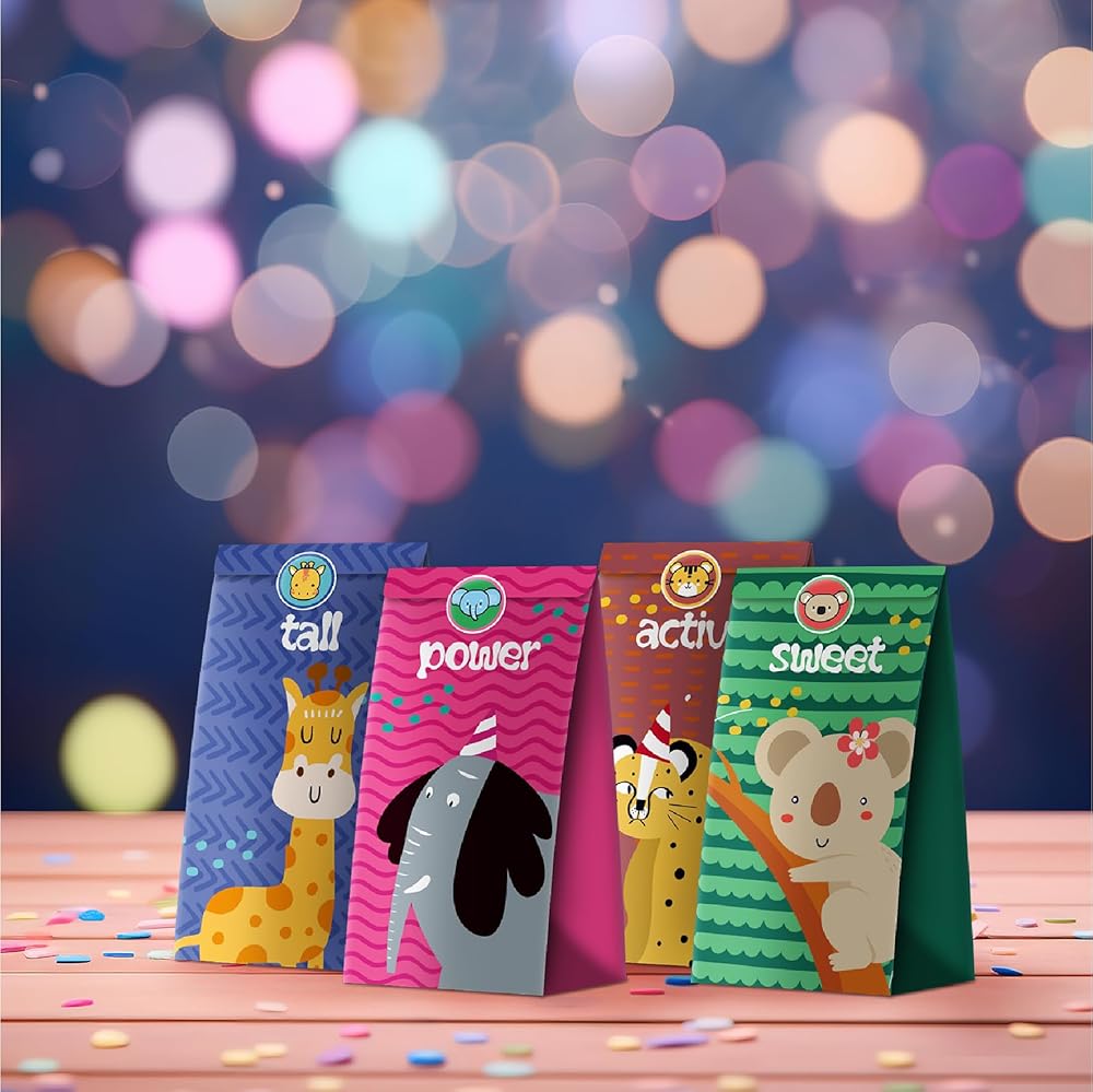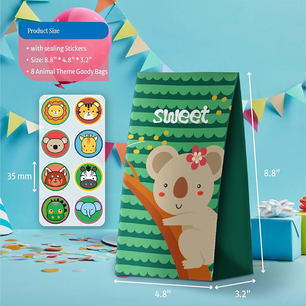 • مثالي لصالح الحفلات: ستكون حقائب الحفلات الحيوانية هذه مع الملصقات حقائب Goody مثالية في أي حفلة موضوع. كانت الألوان الزاهية وأنماط الحيوانات ضربة كبيرة في كل مناسبة.