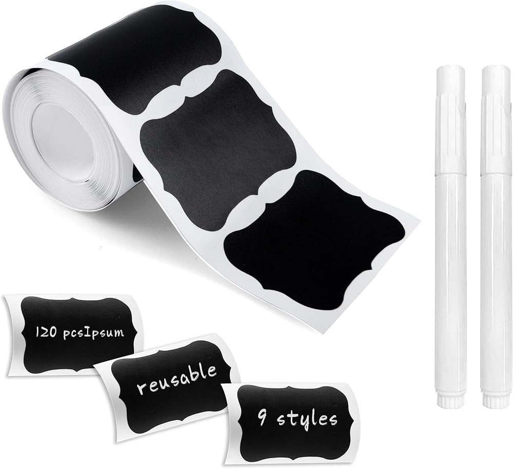 MUWOOB Chalkboard Labels, 120 Pcs Black Reusable Waterproof Labels Stickers, Kitchen Pantry Sticker for Containers, Mason Jars, Condiments, Food Storage (Rectangle)