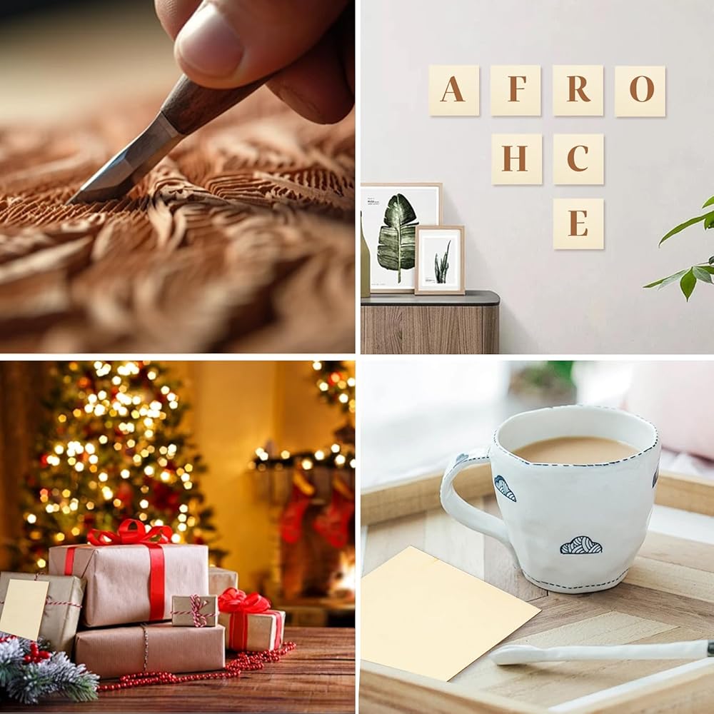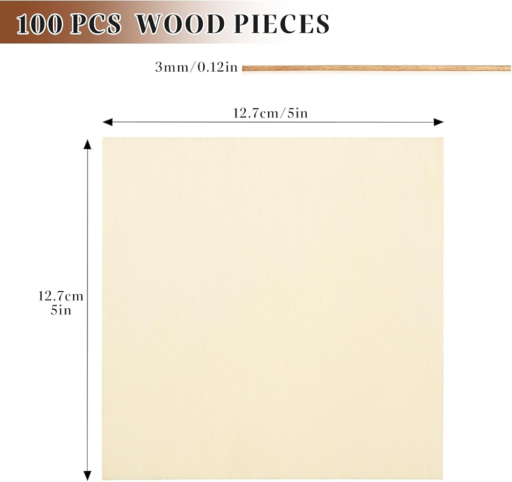 الأبعاد: يبلغ طول كل قطعة خشبية مربعة 5 بوصات مع وجود كلا الجانبين فارغًا وغير مكتمل ، ويقرب سمكها حوالي 3 مم