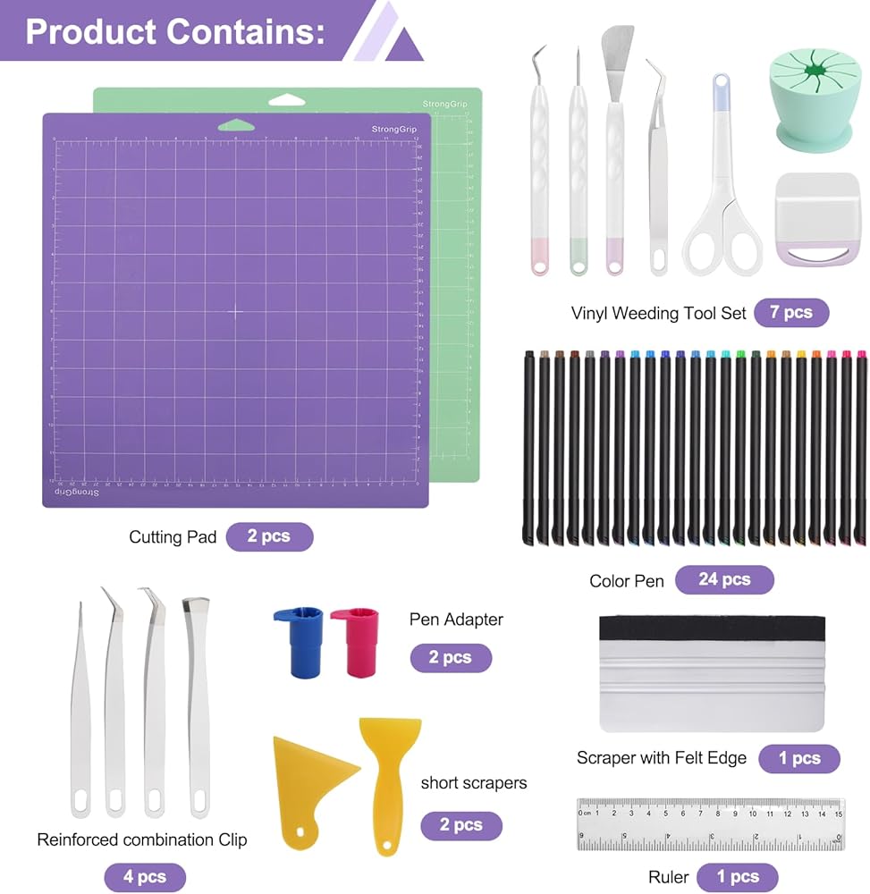 مجموعة أدوات CRICUT JOY. يحتوي هذا الفرح Cricut على 43 ملحقات ، وهي مريحة للغاية للاستخدام. تم تصميم أداة الأعشاب الضارة بشكل مريح بتصميم بسيط وغير انزلاق ثقوب معلقة. تساعد مجموعة Cricut Weeding على إزالة المناطق غير المرغوب فيها. تساعد المقصات ذات شفرات الفولاذ المقاوم للصدأ المتصلبة في التعامل مع مجموعة متنوعة من المواد. حصيرة القطع لديها التصاق قوي لإبقاء المادة في مكانها وإزالتها بسهولة دون تمزيق. استعد لعملتك الفنية الفريدة مع مجموعة ملحقات Cricut Joy هذه