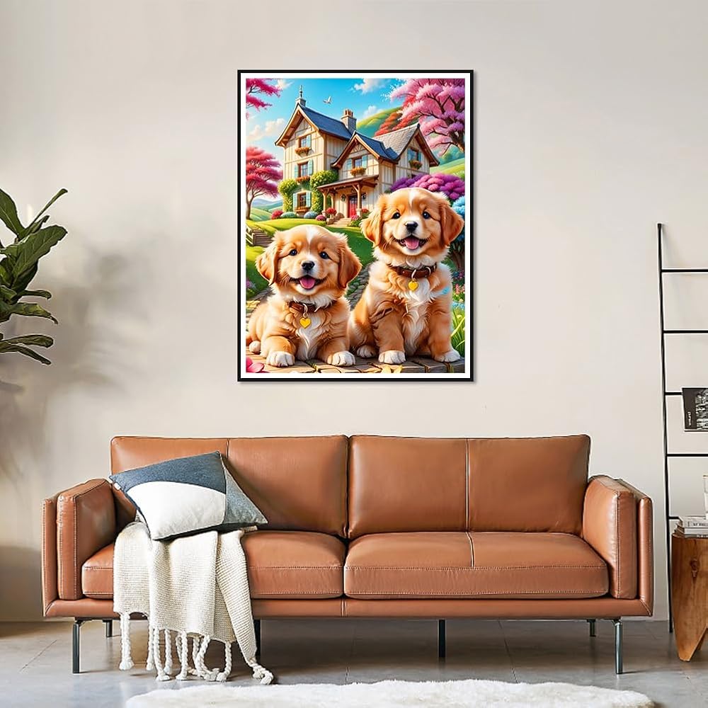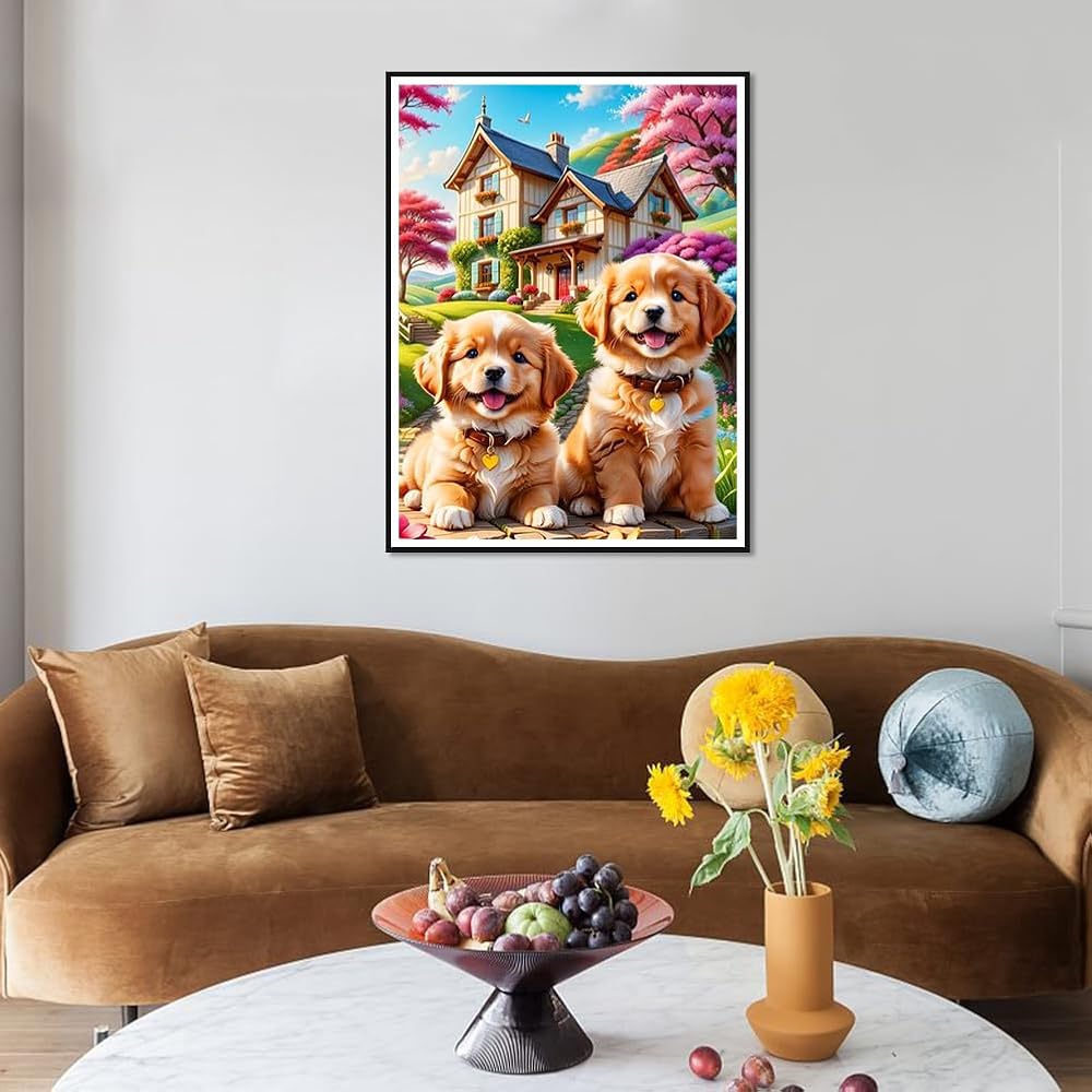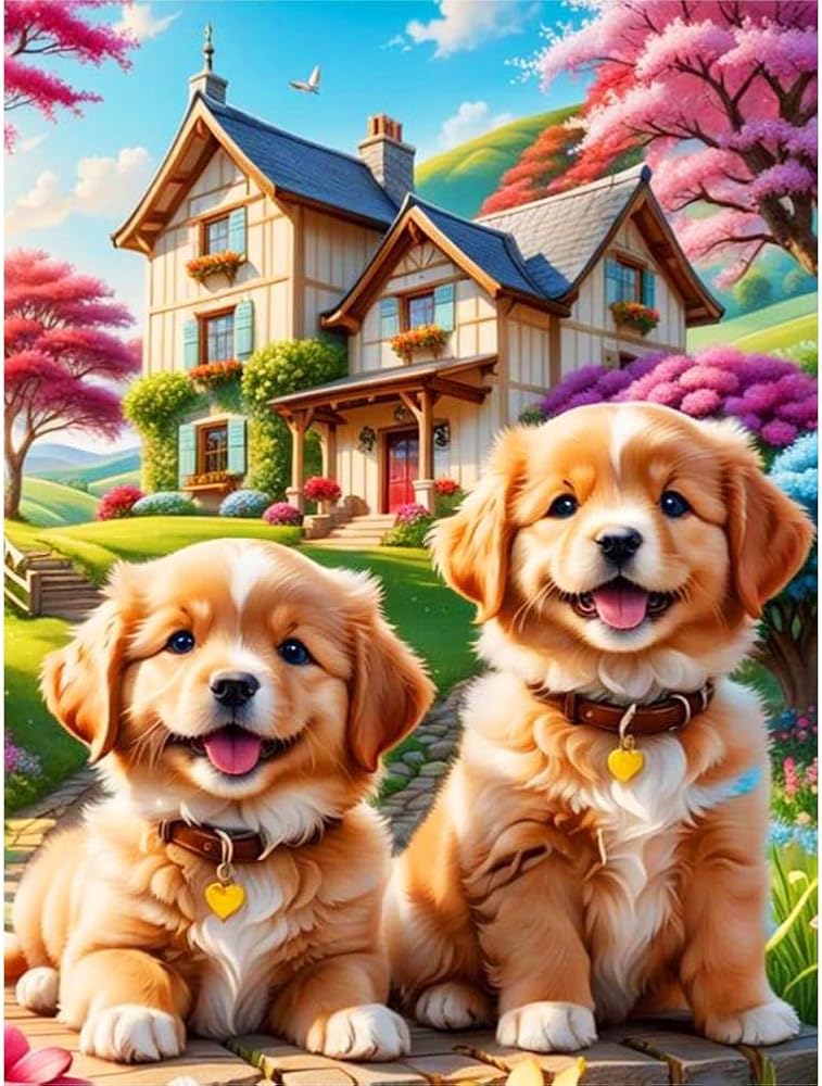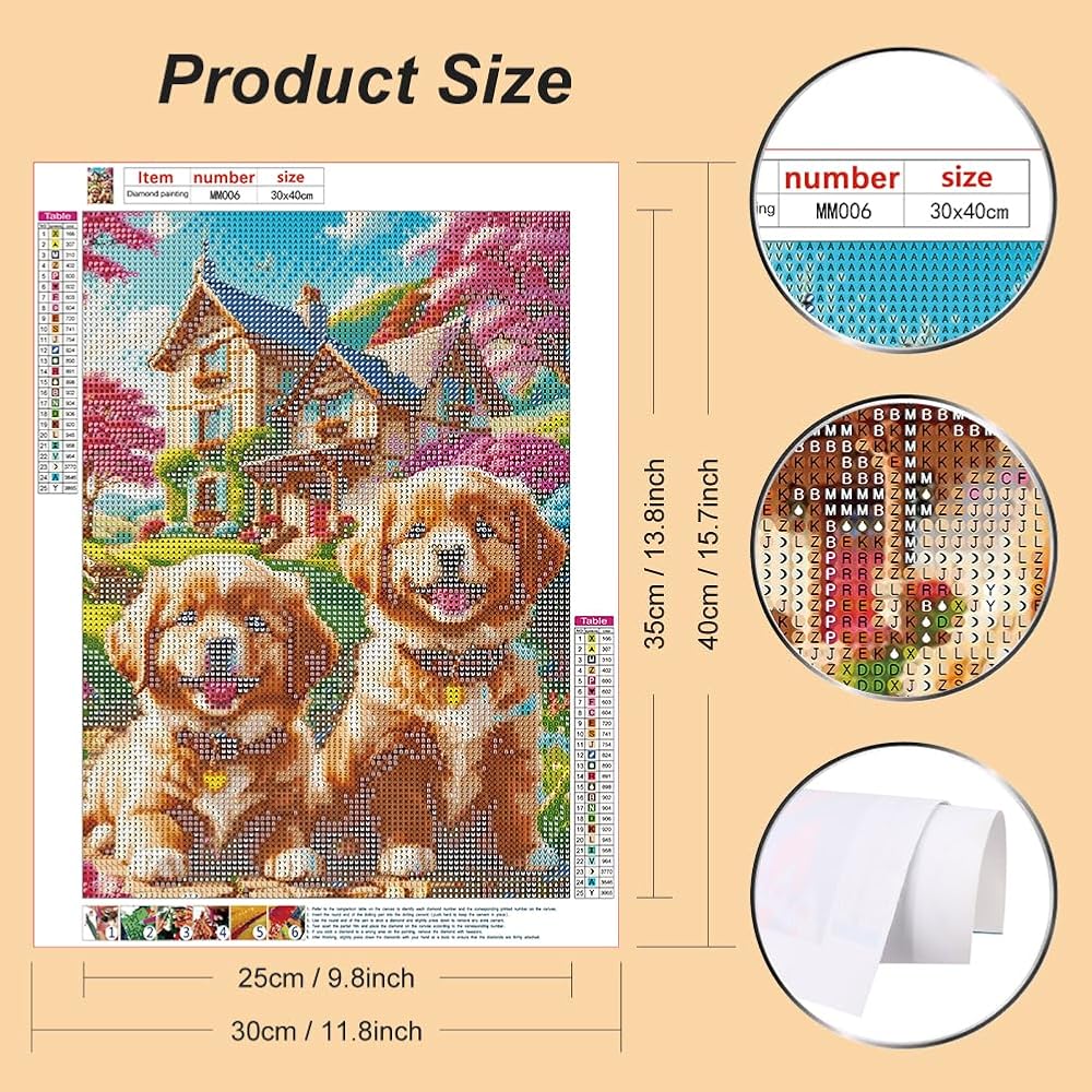 【فنون الماس】 مجموعات الطلاء الماس للكلاب للبالغين ، تغطي الماس الدائري الصورة كاملة ، مما يجعل الصورة أكثر لامعة وواقعية ، إنها أكثر الديكور DIY شعبية في الوقت الحالي. إذا كان لديك ما يكفي من الوقت والصبر ومثل المشروع الصعبة ، فهذا مناسب لك تمامًا