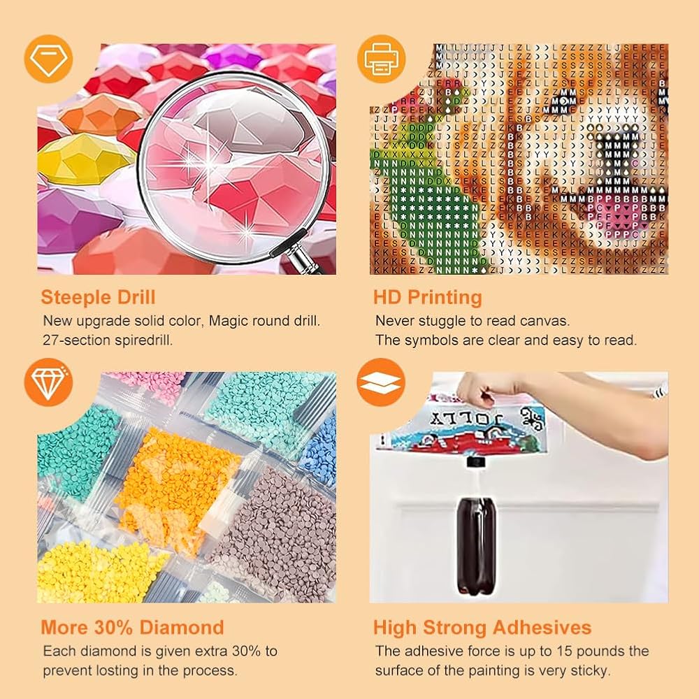 【مجموعات اللوحات الصديقة للبيئة】 مجموعات اللوحات الماسية تستخدم قماش زيت عالي الطباعة ، غير سامة ، مقاومة للماء ، محمية بيئية ، لن تتلاشى أبدًا ، مما يجعل غرفتك أكثر حيوية وتشرقة في الضوء