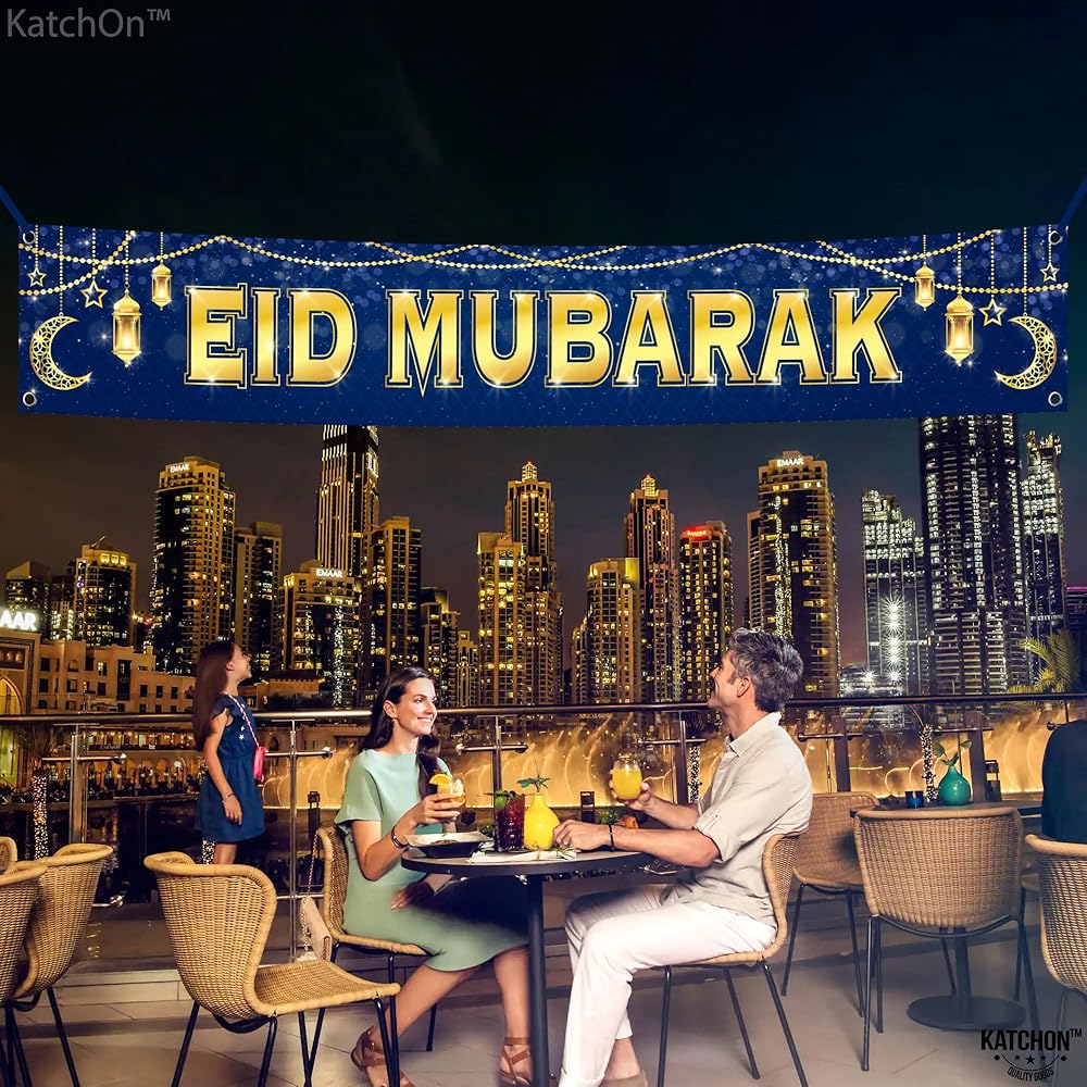 كاتشون ، ديكورات لافتة مبارك - كبيرة ، 120 × 20 بوصة | زخارف العيد الأزرق للمنزل 2025 | عيد مبارك علامة ، عيد مبارك خلفية ، عيد مبارك ديكورات للمنزل | ديكورات العيد في الهواء الطلق