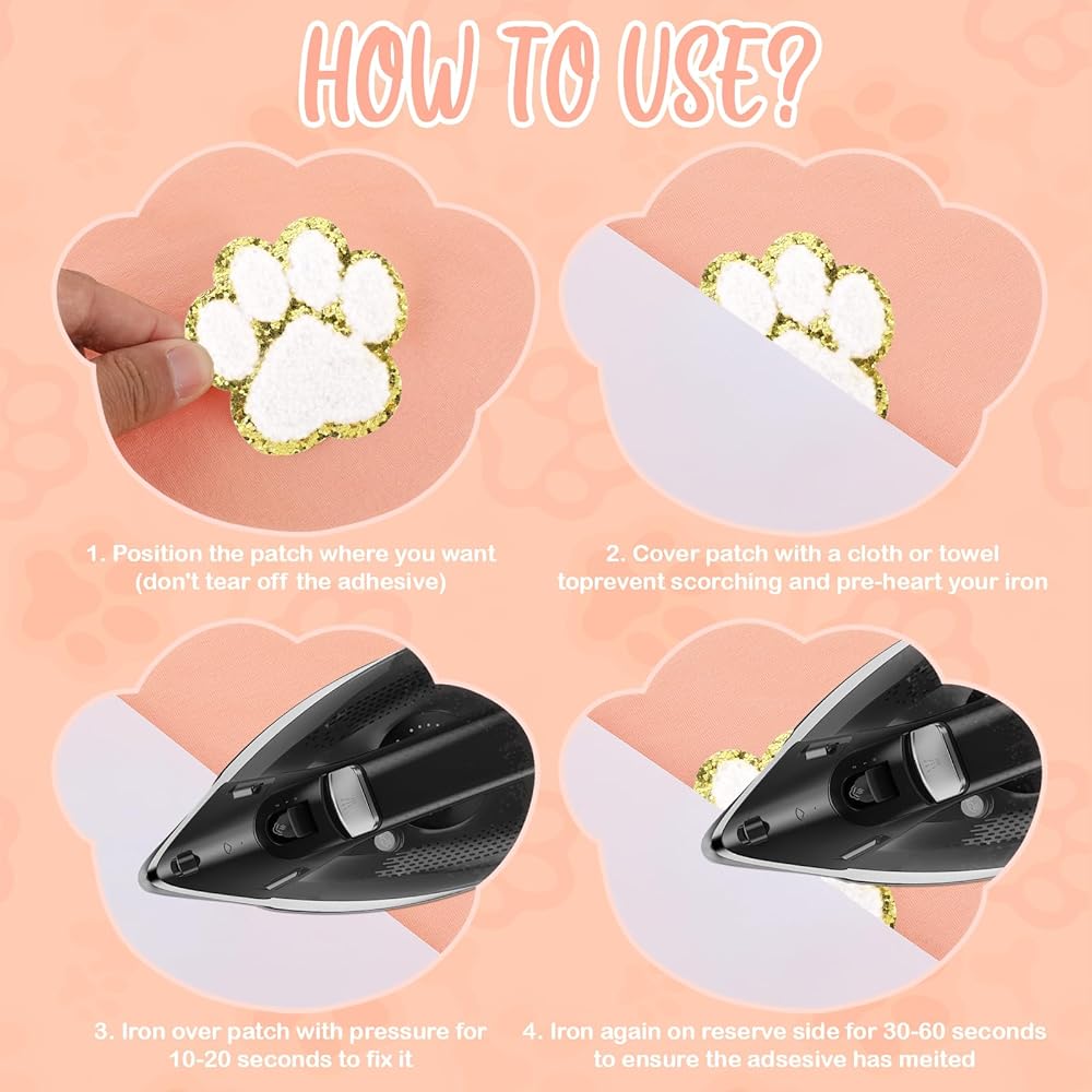 Adhesive: The paw print stickers have a durable adhesive on the back, which can be ironed or sewn on any clothing and is not easy to fall off.