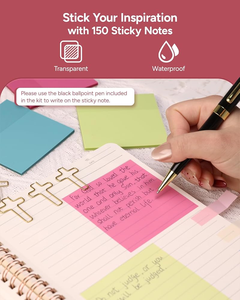 • 【إكسسوارات الكتاب المقدس الممتازة】 تشتمل مجموعة لدينا أيضًا على دفتر ملاحظات لفائف ، 5 قوالب و 3 ملاحظات لزجة ، يعد دفتر المجلات A5 في اليومية وسيلة مريحة لتسجيل أفكارك وصلواتك وتأملات في أي وقت ، مما يساعدك على فهم معنى الكتب المقدسة بعمق وترك قلبك ينمو في الكتابة. 5 قوالب ذات أشكال مختلفة يمكن أن تساعدك على رسم رسومات جميلة لتخصيص الكتاب المقدس الخاص بك ، 3 ملاحظات لزجة توفر طريقة مرنة لتدوين الانعكاسات الرئيسية أو الأفكار دون وضع علامة على صفحات الكتاب المقدس مباشرة.