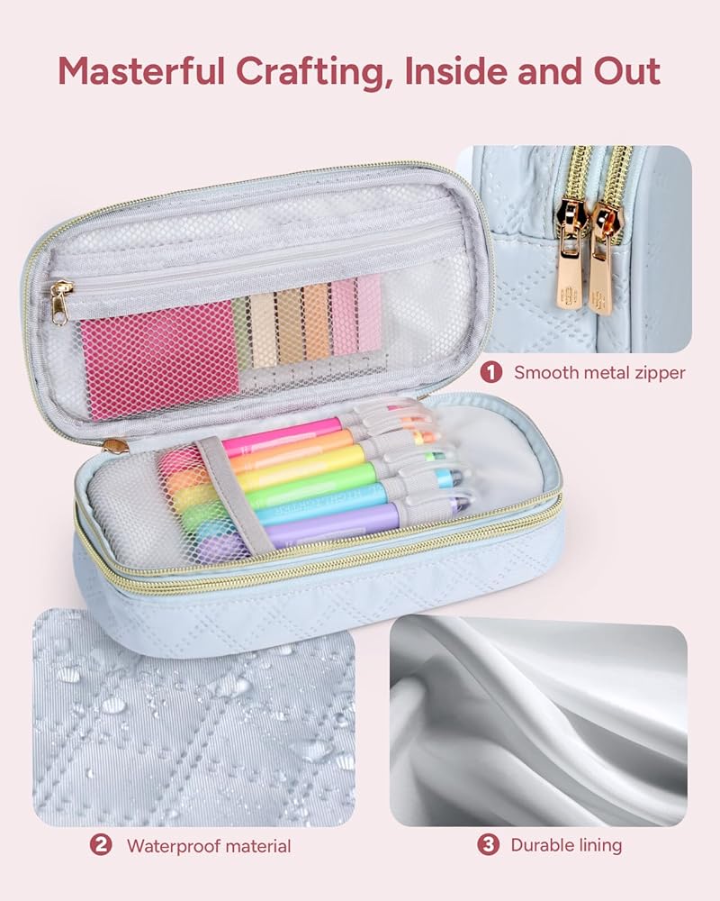 • 【حقيبة قلم رصاص كبيرة محمولة】 يقيس حالة القلم الرصاص 9.45 "× 4.53" × 2.36 "وصياغة من المواد القماشية المقاومة للماء ، والرحلات المعدنية عالية الجودة ، والتي هي التي تعتبر مقاومة للماء ودائمة.