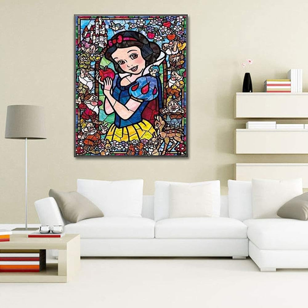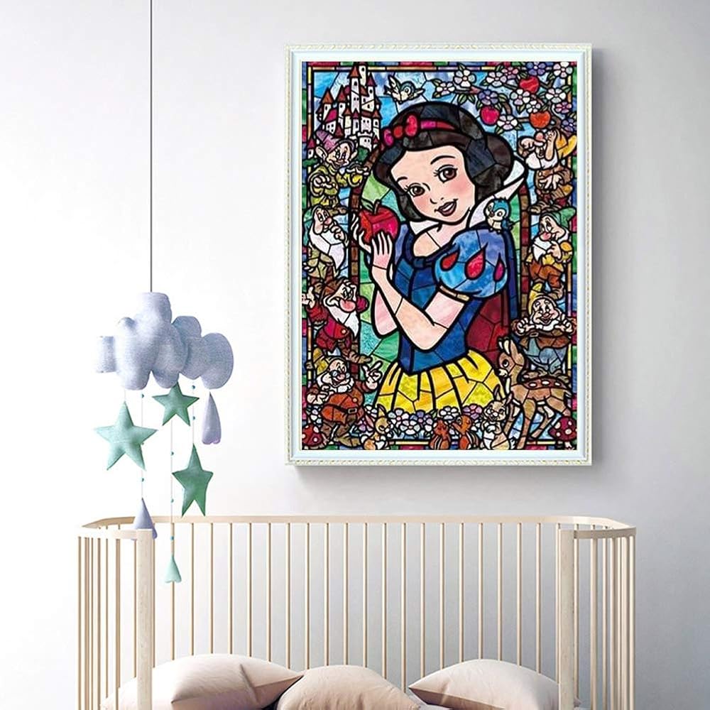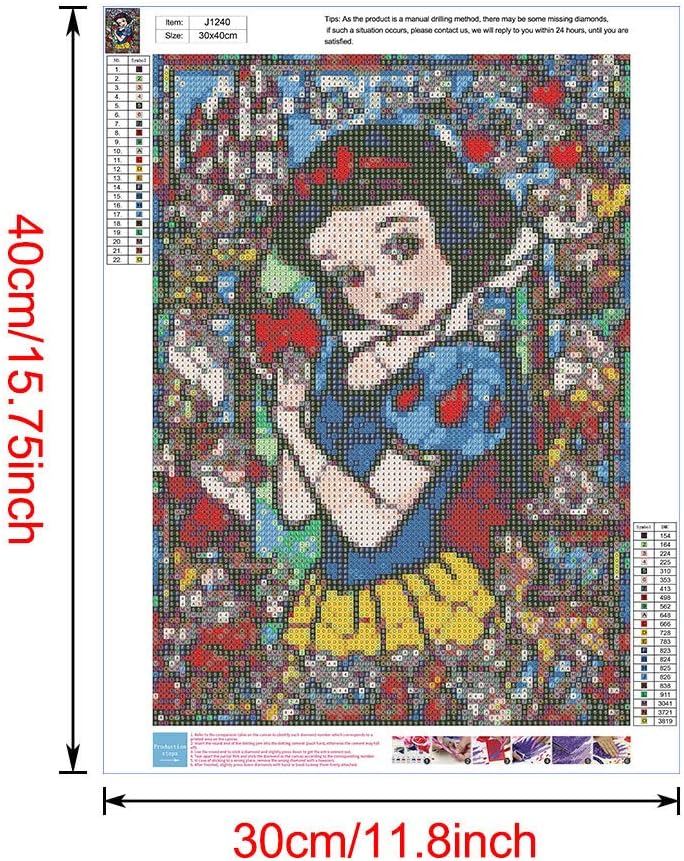 طلاء الماس 5D الكامل ، الثلج الأبيض الأميرة الرسوم المتحركة DIY Diamond Painting by Number Atts ، Rhinestone Crystal Drawing Gift for البالغين ، 16'x12''home décor
