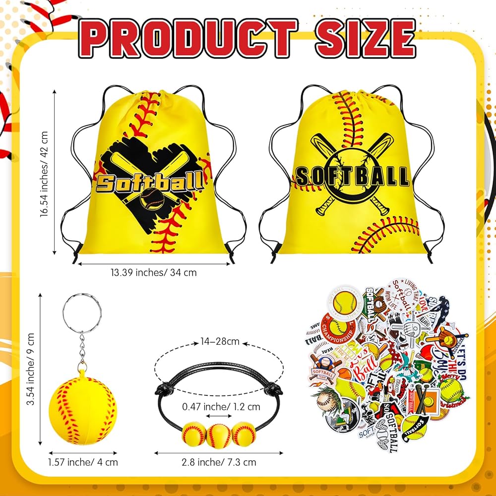 • Vibrant Softball Party Decorations Package: show a sport themed party with our set of softball party favors which include 12 soccer keychains, 12 softball bracelets, 50 softball themed stickers, and 12 soccer drawstring bags in 2 designs( 6 pcs of each design); This comprehensive package of 86 softball party supplies