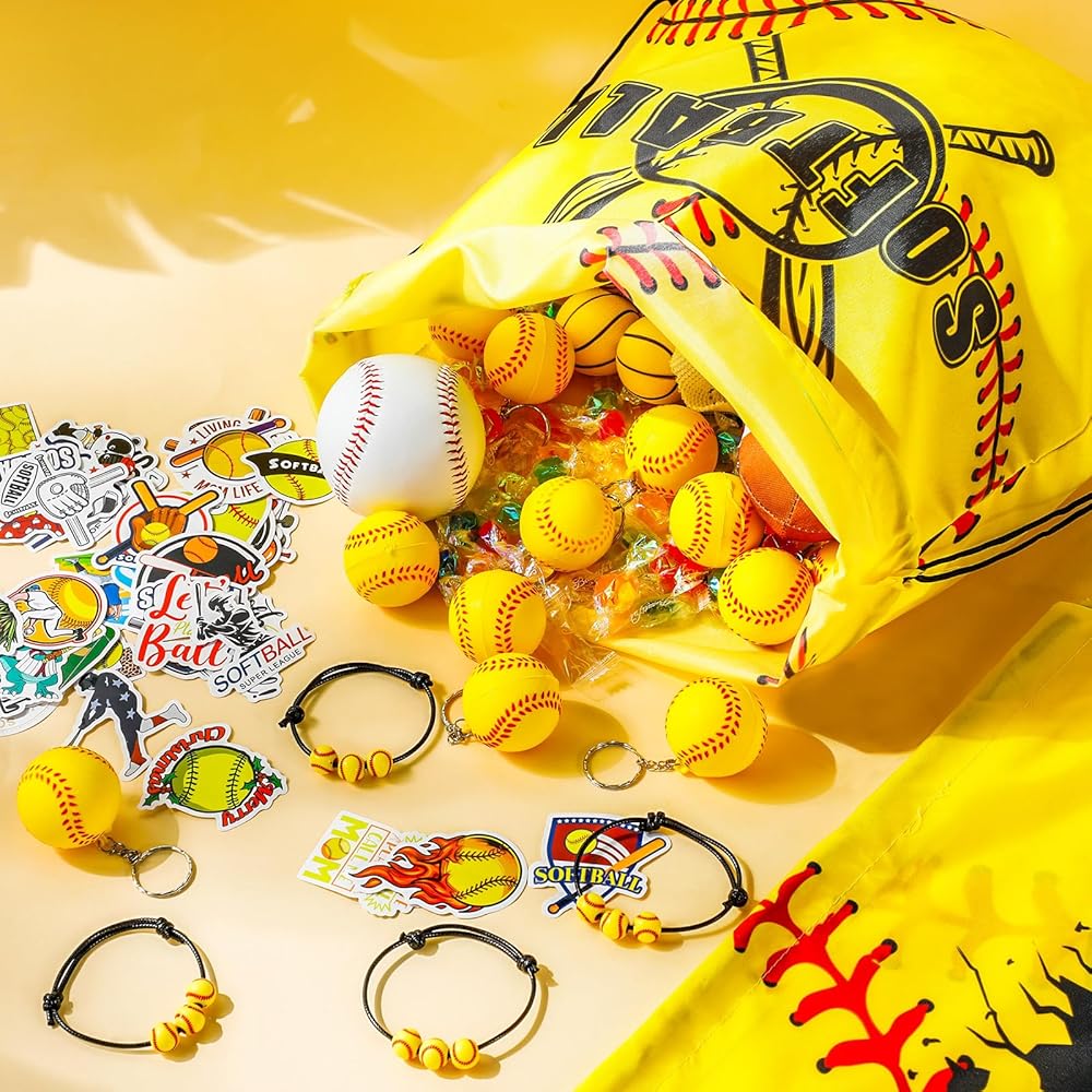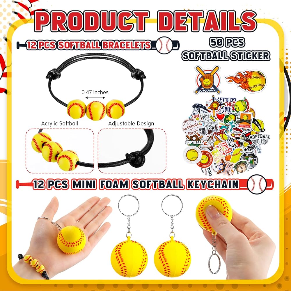 86 PCS الحفلة اللينة الحفل مجموعة هدايا الكرة اللينة الأكياس ناعمة كرات الرباط أكياس Softball مفتاح الأساور Softball ملصقات الكرة اللينة الهدية الرياضية هدية