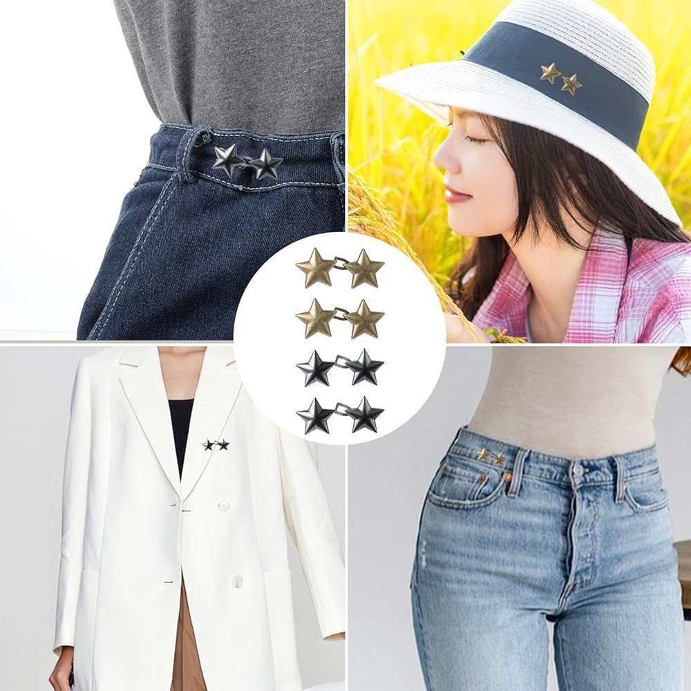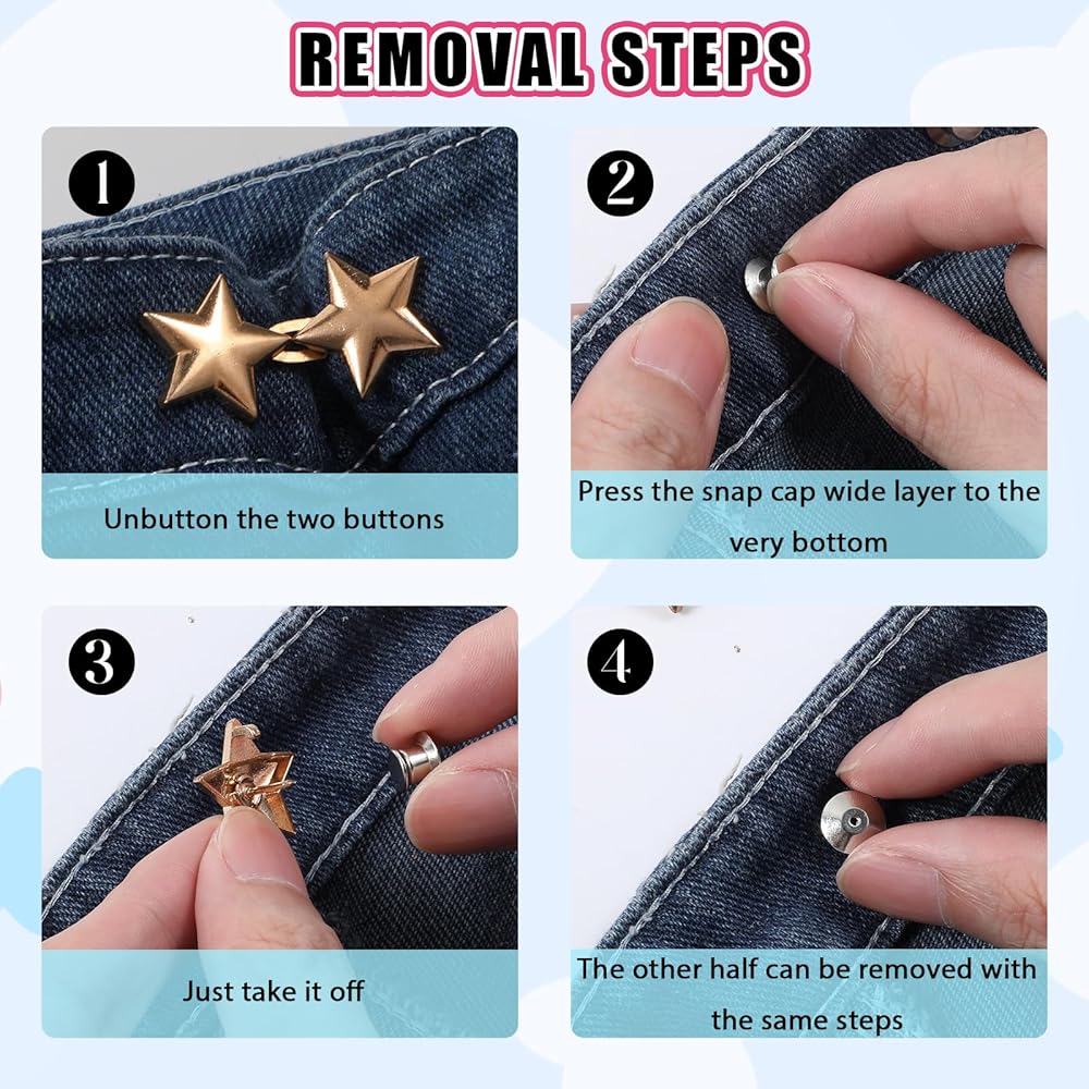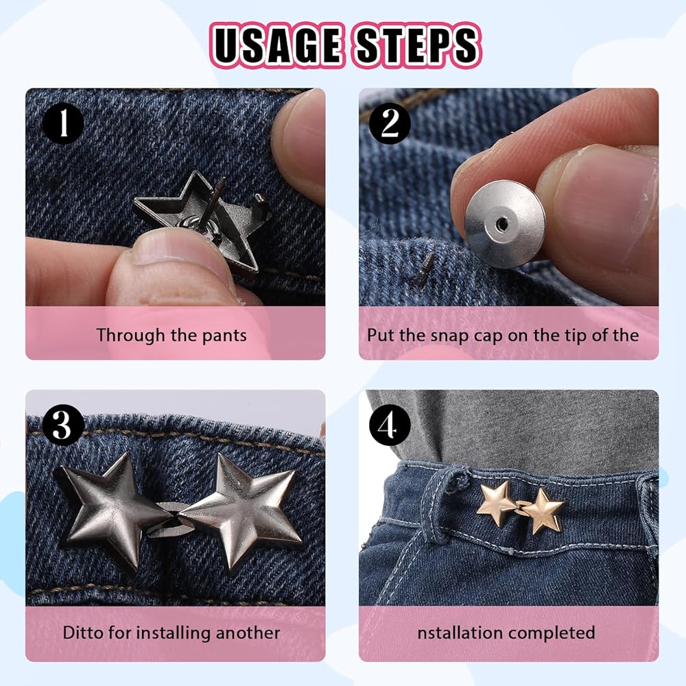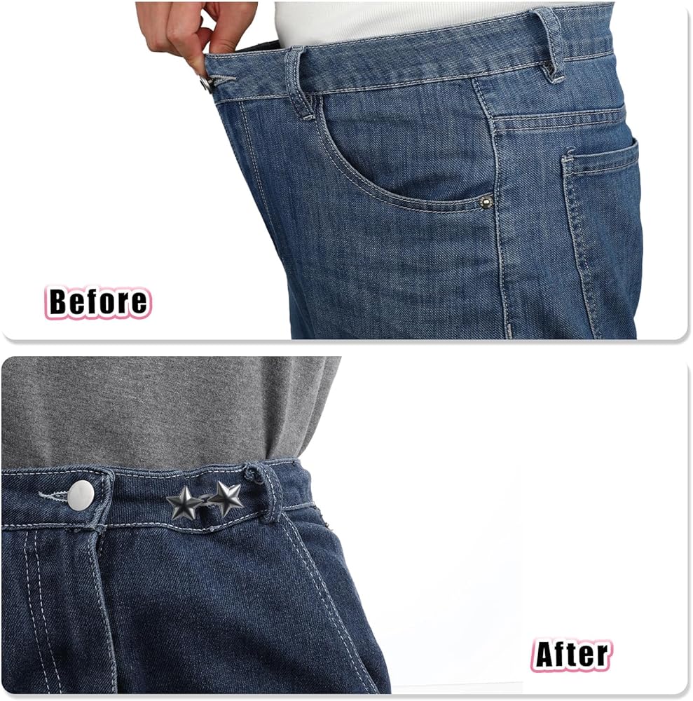 Wide Application: The waist tightener for pants women is suitable for most jeans, jackets, shirts, overalls, skirts, backpacks, etc. You can match them at will with these star buttons pins for loose jeans