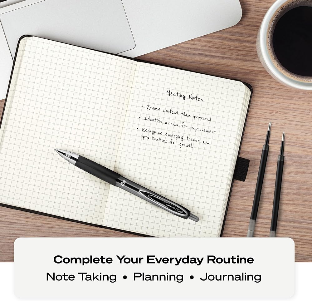 • Sleek Look: Each black pen in our gel pen set features sleek metallic barrel accents; Our black pens come equipped with 0.5-millimeter tips that draw vivid lines
