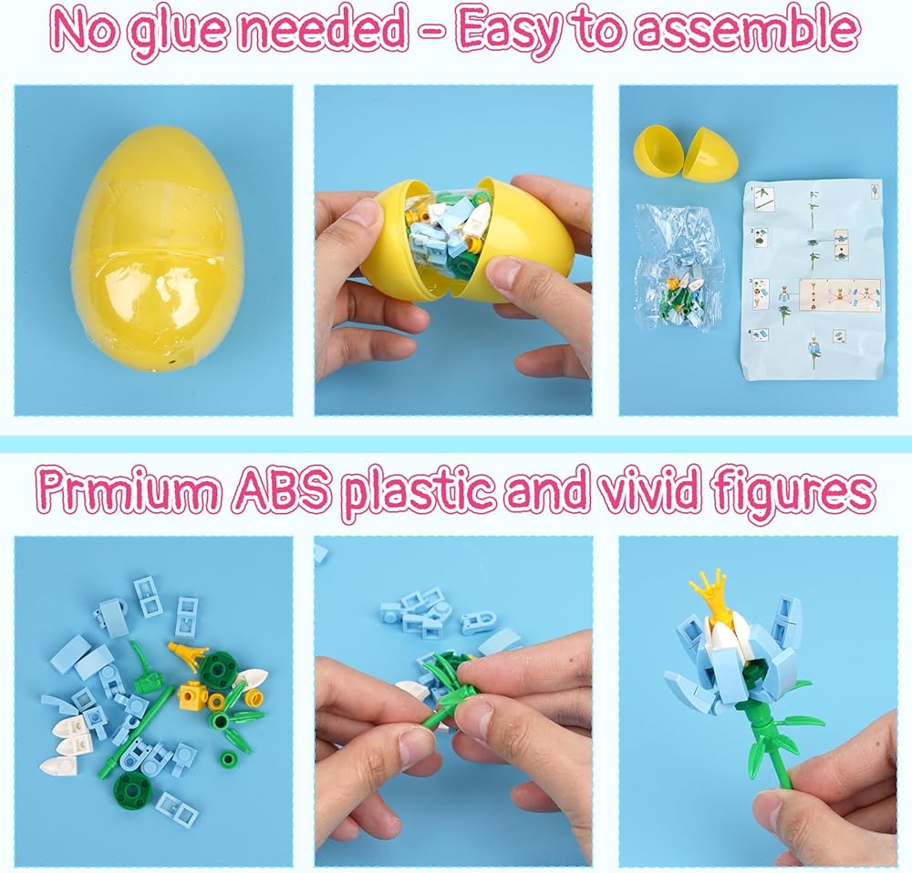 مجموعة القيمة: تشمل بيض عيد الفصح المملوءة قبل 24 من لبنات البناء المصغرة ، و 12 لبنة جميلة لبناء الزهور و 12 لبنات بناء الحشرات في صندوق هدايا. يمكنك استخدامها مباشرة بعد استقبالها والسماح لطفلك بالحرية في اللعب معهم.