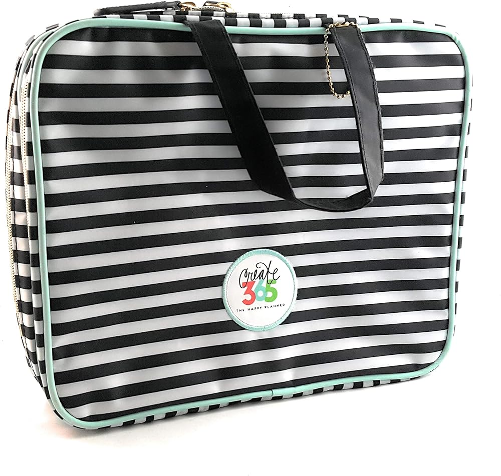 Me & My Ideaign Storage Case - The Happy Planner Scrapbooking Supplies - الشريط الأسود والأبيض - يحمل مخططك وإكسسواراتك - حقيبة سحاب مع مقبض و 2 أكواب قابلة للإزالة - 12 × 10.5 × 4 بوصة.