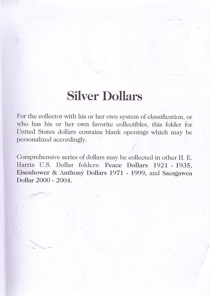 H.E. Harris & Co. coin folders are federal blue, with silver or copper design and lettering and is also designed with historical information and coin specifications for each year, making it a useful reference for collectors.