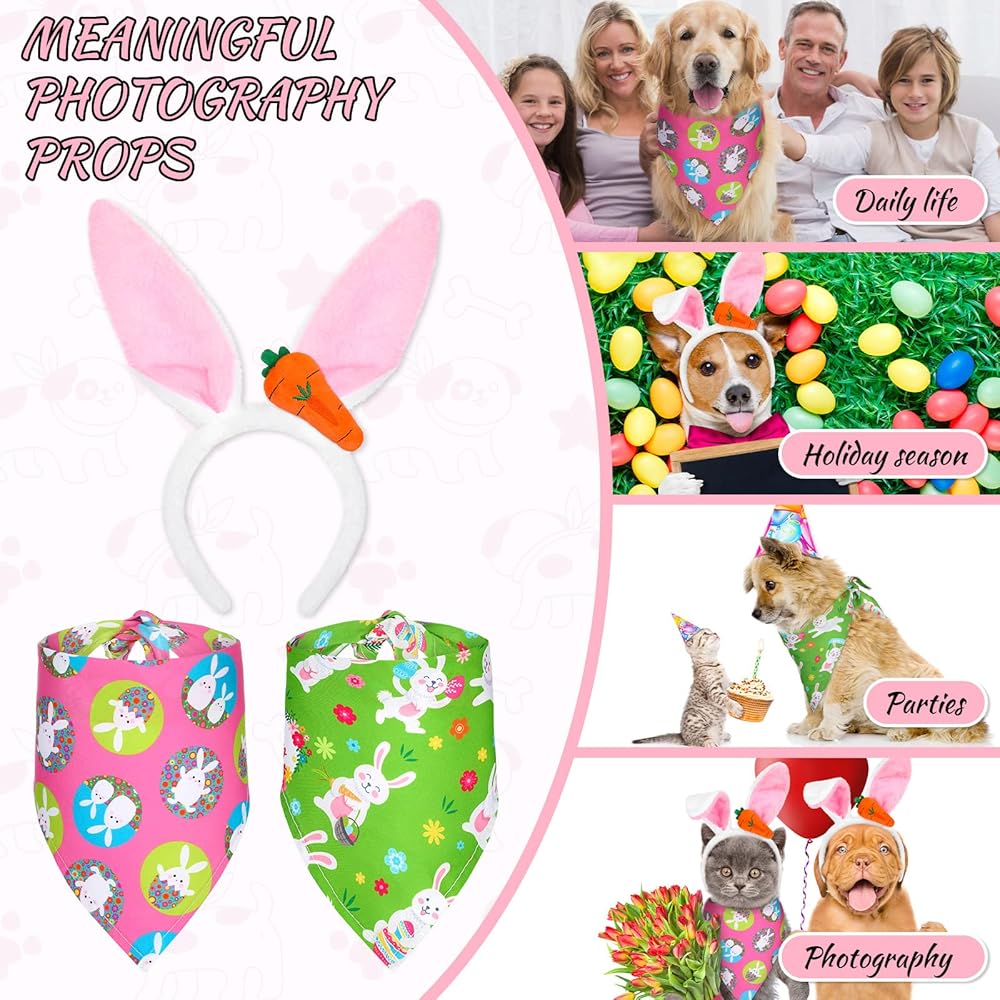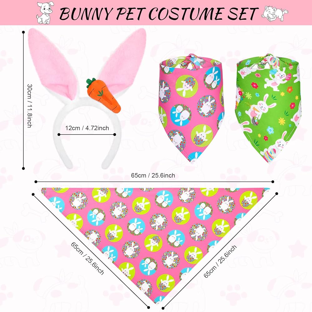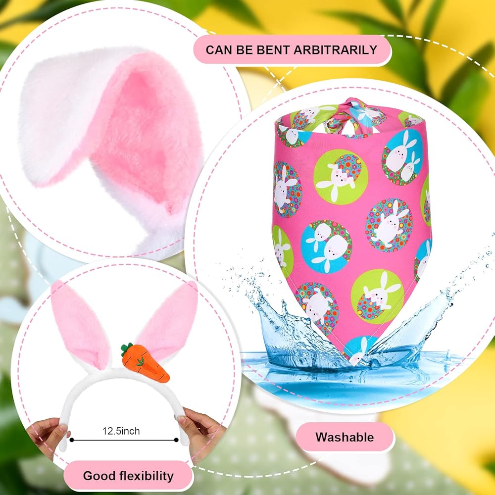 • A Wide Range of Occasions: bunny ears dog costume and Easter bandana set can be applied to dress up your pet, adding lovely clothing to your pet at Easter, Halloween parties, pet theme parties; Pet bandana can not only primp your pet, but also protect your pet from drooling