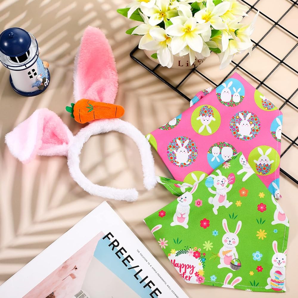 Easter Bunny Ears عصابة رأس للكلاب مع الجزر و 2 PCS Easter Dog Bandana Cute Easter Dog Assume Accessories Rabbit Egg Triangle Dog Charf For Small Medium Dogs Pets Party Party