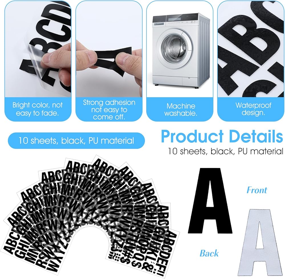 Ymapinc iron on letters for fabric are available in a set of 10 sheets, including 310 pieces of black iron on letters and symbols. Each letter measures 1.97 inches, making them suitable for adding a personal touch to your clothing, accessories, and more. Made from PU material, these iron on vinyl letters are durable, flexible, and retain their color and shape without cracking, even after multiple machine washes.