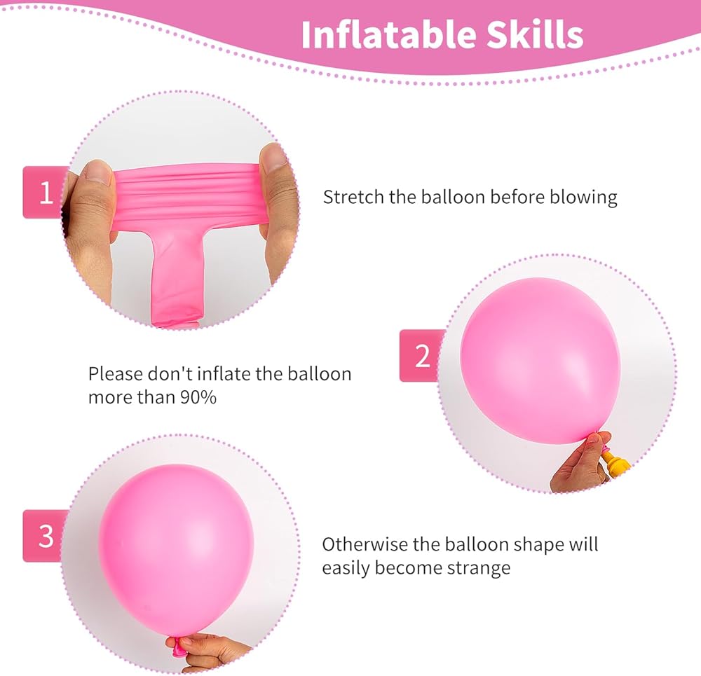【ستبقى البالونات ذات اللاتكس البيضاء المملوءة بالهواء ممتلئة لمدة تصل إلى 72 ساعة ، بينما مع الهيليوم سيبقى ممتلئًا لمدة 3-6 ساعات. للحصول على أفضل نتائج تعويم ، املأ الهيليوم 1-2 ساعات قبل الحدث الخاص بك. نوصيك باستخدام أدوات مثل مضخة البالون اليدوية للتضخم السريع. يأتي مع نقاط لاصقة وشريط وشريط تزيين بالون لإعداد قوس بالون سريع وبسيط. يمكنك استخدام خيالك بالكامل وجعل زينة البالون بأشكال مختلفة.