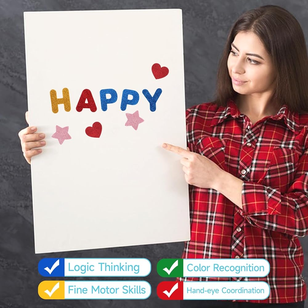 • Material: Each foam glitter letters for crafts are made of paper material with some glitter on it. It is fashionable and beautiful, reliable and durable, and has no smell. You can rest assured to use it for a long time