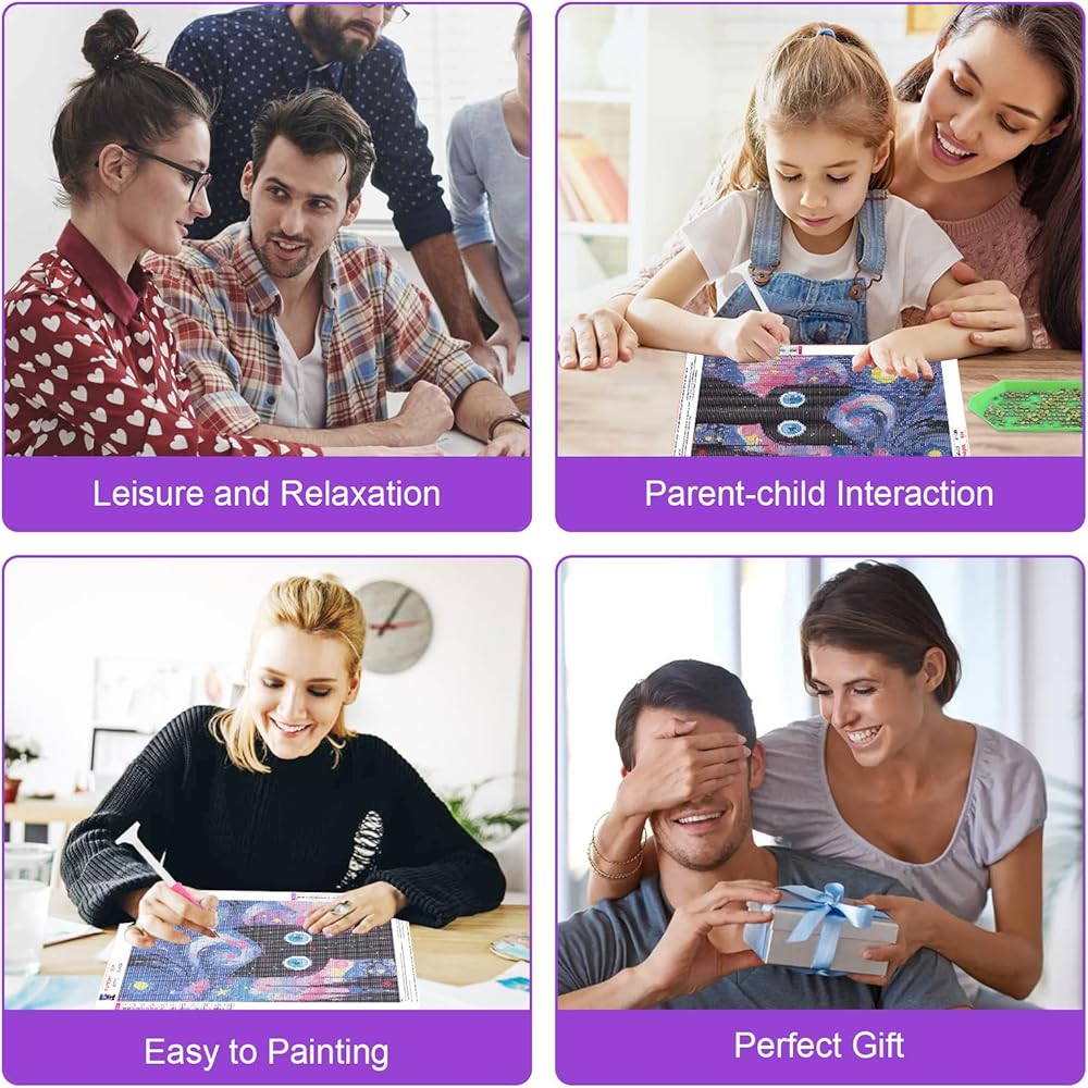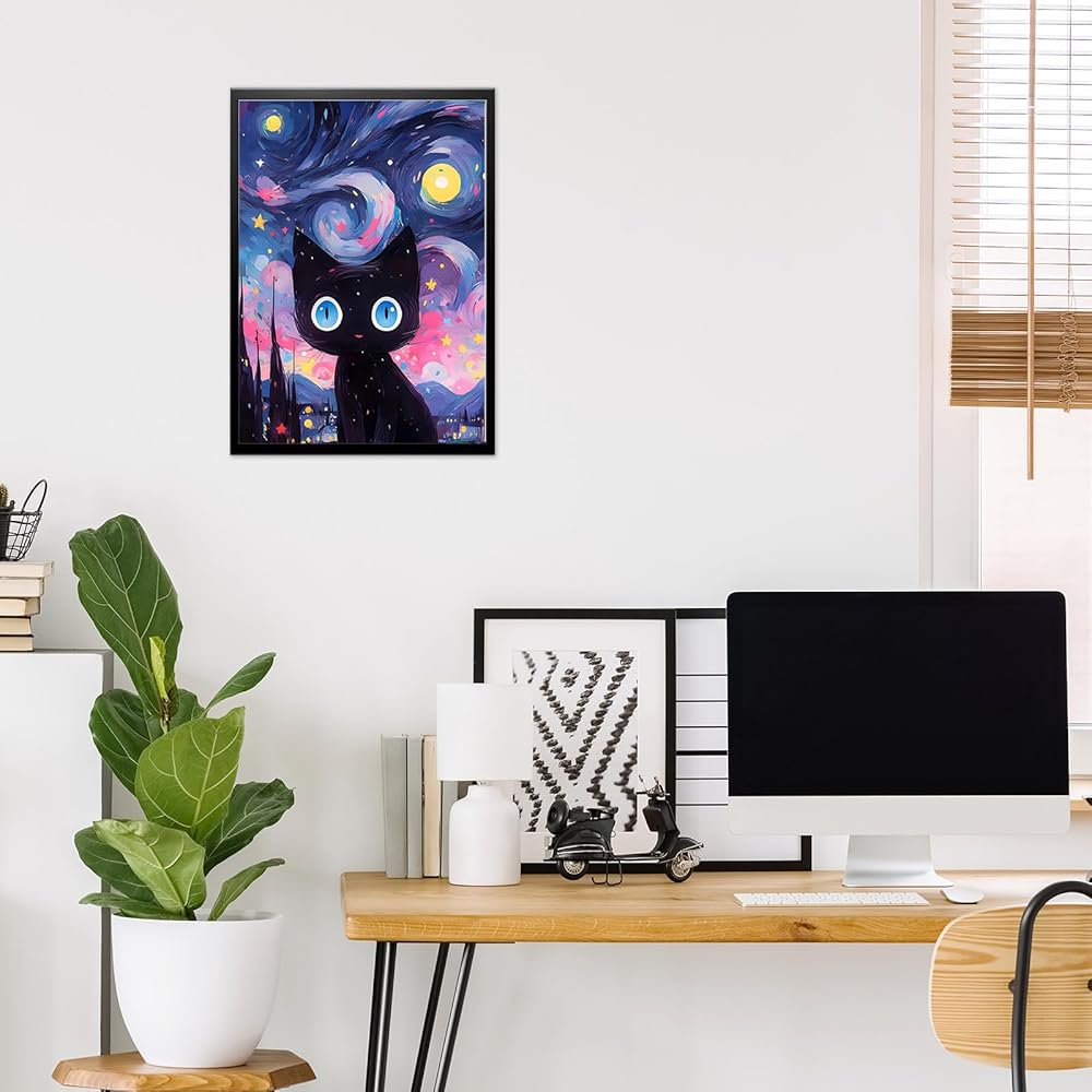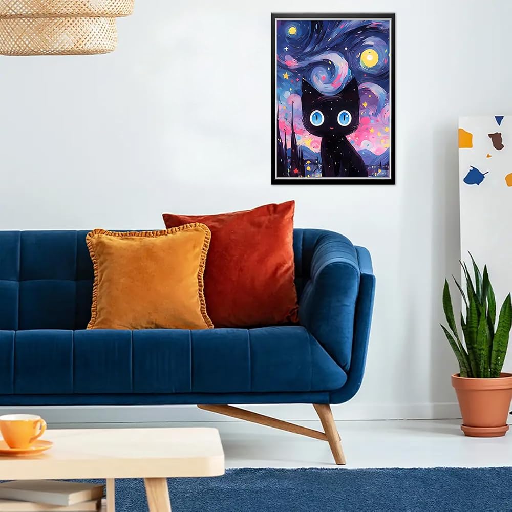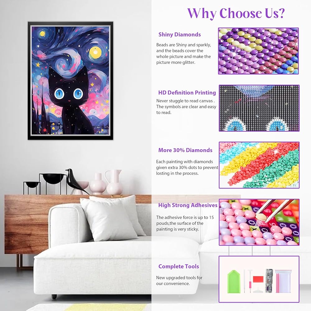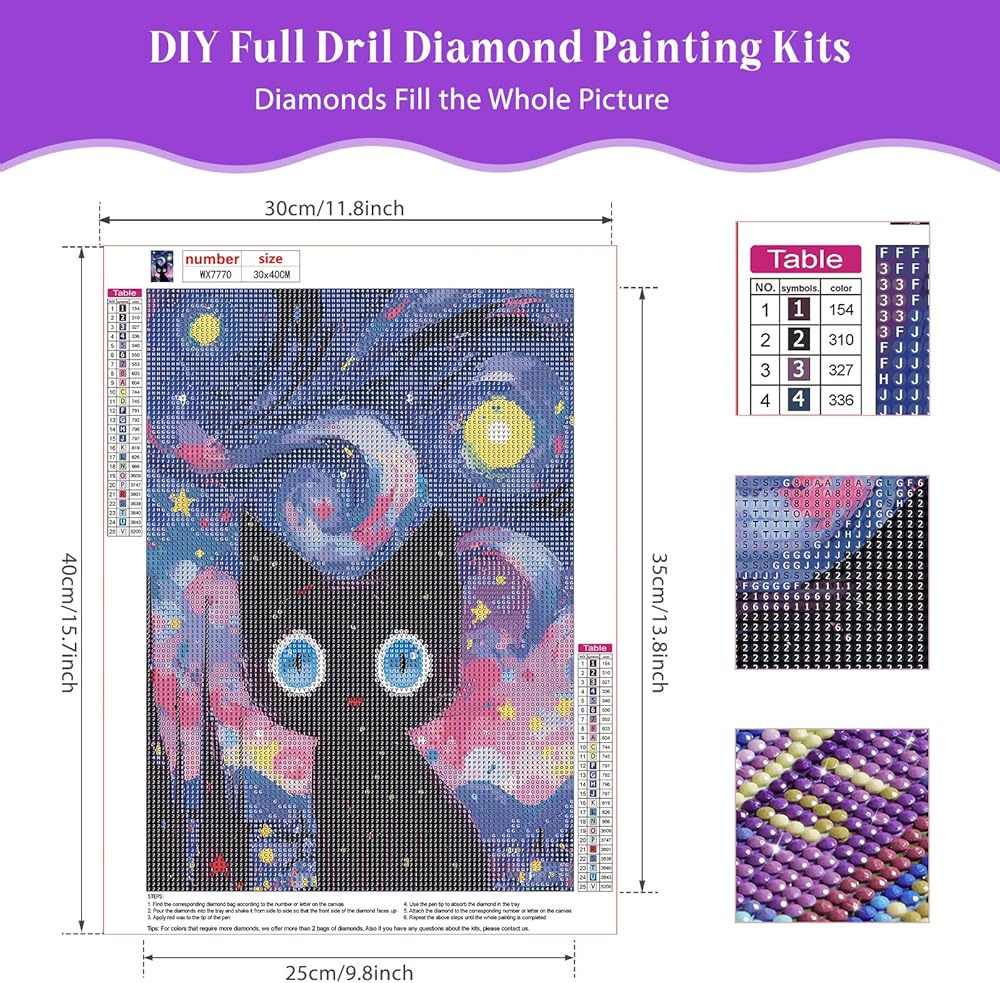 Heibago Diamond Art Kits للبالغين Cat ، ونقاط الماس الكاملة للتعبير الإبداعي ، ومجموعات الطلاء الكاملة لـ STARRY Night Night 5D DIY ، رائعة لعشاق الفن وأفكار الهدايا ، 12 × 16 بوصة.