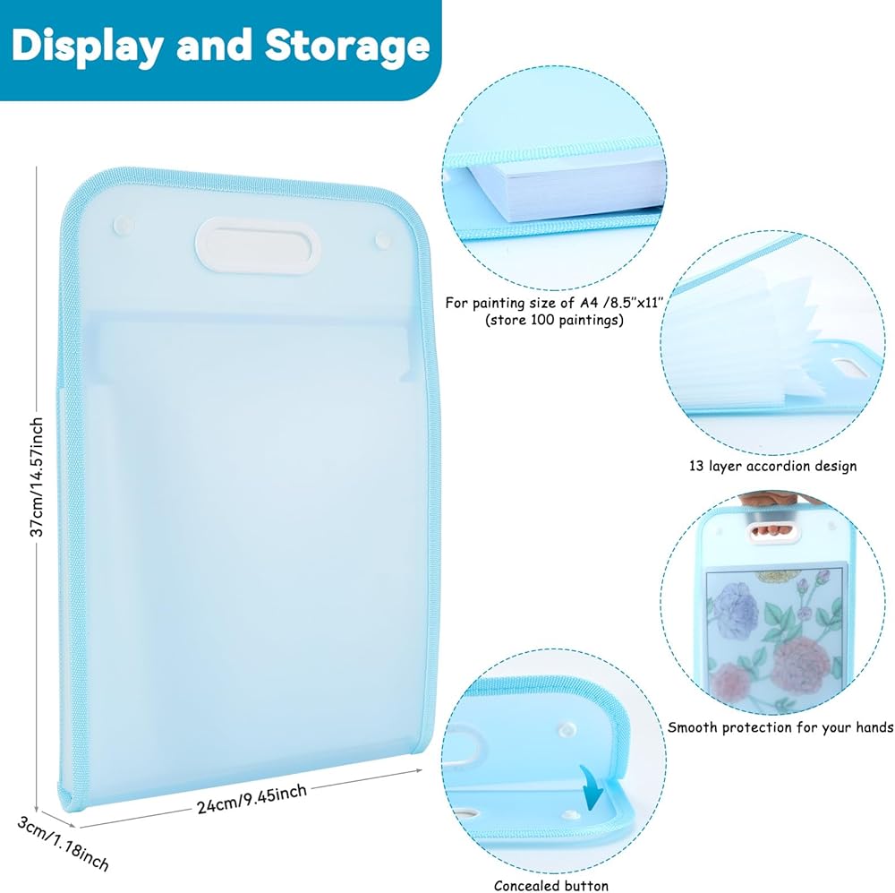 • 【الحجم المناسب】 حقيبة حمل المحفظة الفنية هذه تحتوي على 13 جيوبًا عموديًا للتخزين المصنفة ، ومناسبة لتخزين ورق الرسم A4 و 8.5 × 11 بوصة ، وكتب رسم ولوحات الرسم ، ولوازم الطلاء. حجمه مناسب للغاية للحمل في حقائب الظهر أو أثناء التنقل.