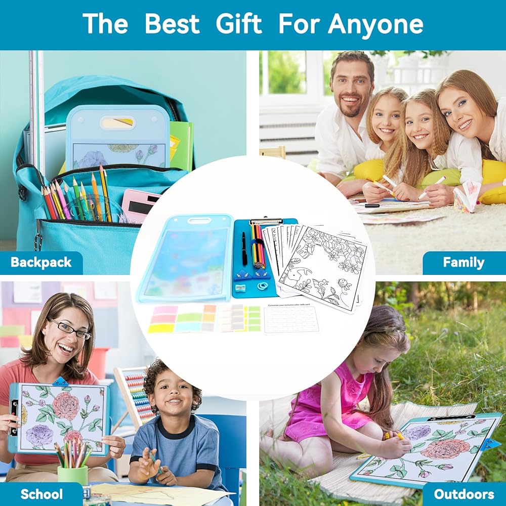 مجموعات إنشاء فنية 6ugooes للأعمال الفنية A4 و 8.5 "× 11" ، لوحة رسم شفافة محمولة ، حقيبة تخزين فنية متصفح وملحقاتها ، لمرحلة المبتدئين ، لوحة السفر ، رسم المشي ، السمة الأزرق
