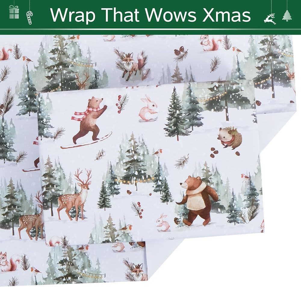 🎁【 تصميم المنتج】: ورقة التغليف هذه بشكل أساسي باللون الأحمر والأخضر مثل اللون الرئيسي ، مع سانتا كلوز ، وأيائل ، وسكان الثلج ، وعناصر عيد الميلاد الأخرى ، تساعد على تزيين هدايا عيد الميلاد