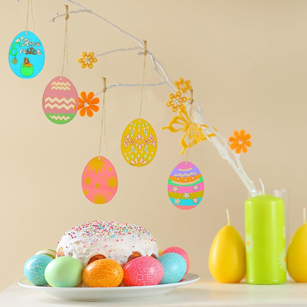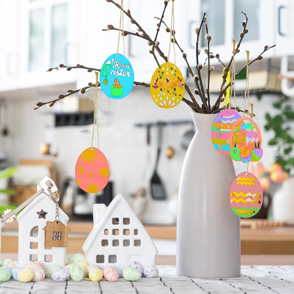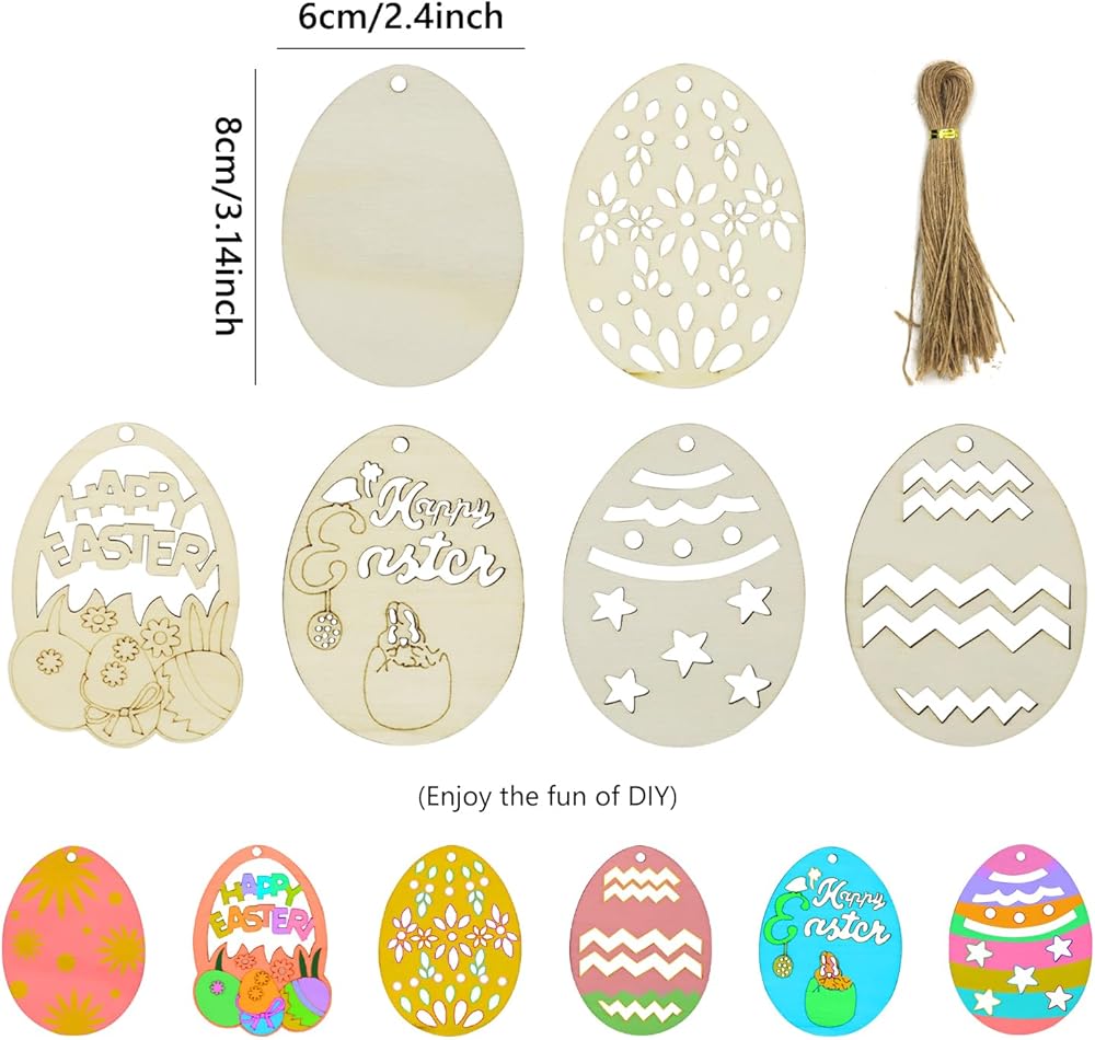 🐰Package Content: You will receive 12 pcs Easter wooden hanging ornaments and 12 pcs twines, about 6 styles, 2 pcs per style. Sufficient quantity can meet your Easter party decorations needs.