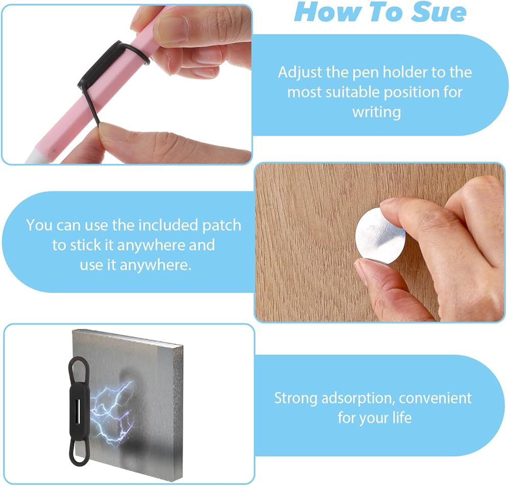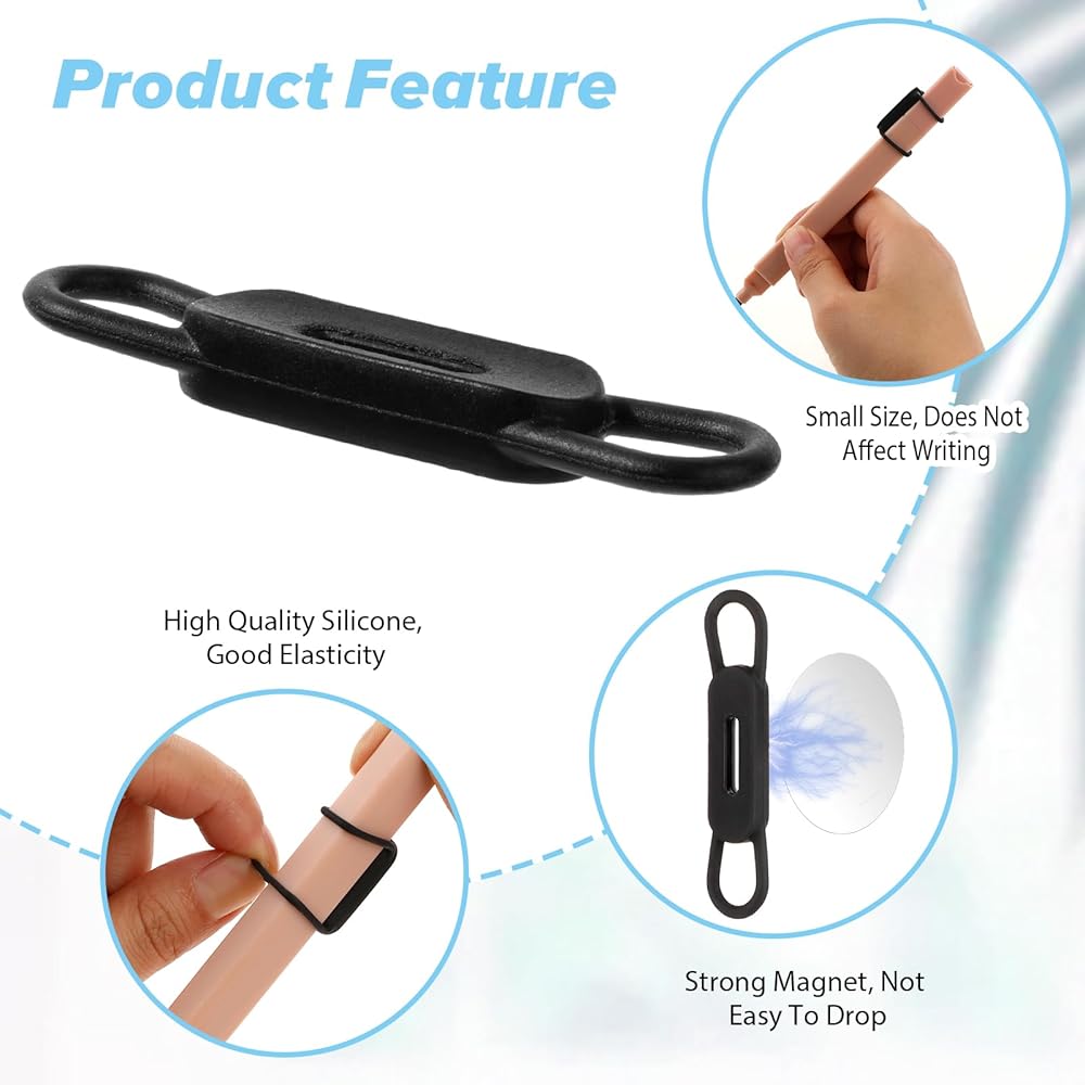 【Lightweight and Durable】Our upgraded pen holder set contains 10 magnetic pen holders and 10 iron pieces, our high-quality silicone pen holders are flexible and strong, ensuring long-term use without deformation or wear. This magnetic pen holder is perfect for organizing your office essentials like keys, USB cables, and more. Create a clutter-free workspace and easily increase your productivity.