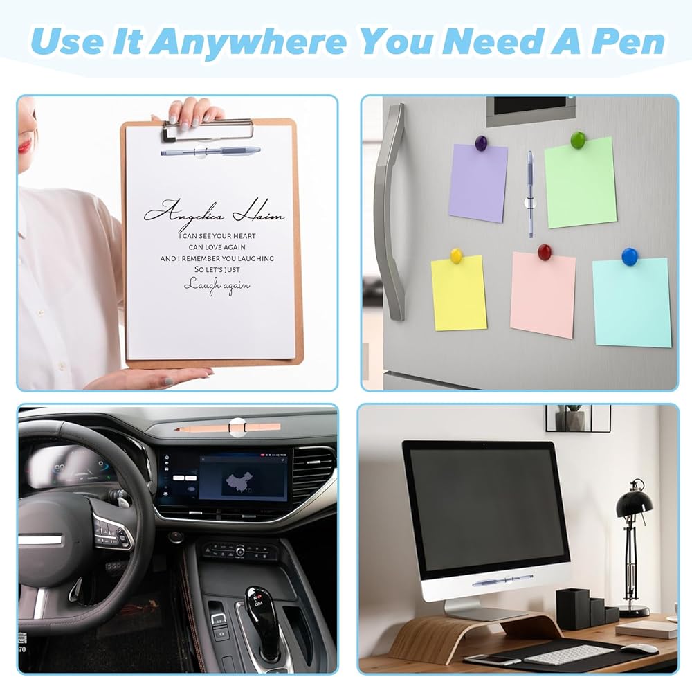 【Multi-Functional Application Scenarios】Use our magnetic pen holder on any smooth surface and remove it quickly. It's perfect for organizing keys, scissors and other items weighing less than 200 grams. Magnetic pen holder for refrigerator can also be used as a refrigerator pen holder or connect the charging cable to the desktop to make your environment more tidy and organized. These pen holders are great for Schools, offices, Kids Desk, gyms, cars, hospitals, Banks... anywhere you need a pen!