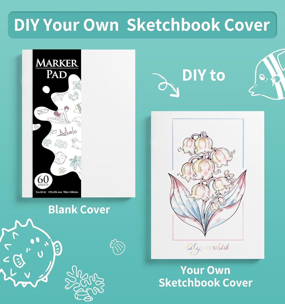 【DIY كراسة الرسم الخاصة بك marker】 يتكون غطاء كراسة الرسم هذا من ورقة مخزون بطاقة 300GSM ويسمح لك بتدوين أغطية وسادة الرسم الخاصة بك ، مثل الرسم أو الرسم أو الملصقات أو أي شيء تريده. عبر عن إبداعك ، وجعل كتاب الرسم الخاص بك.