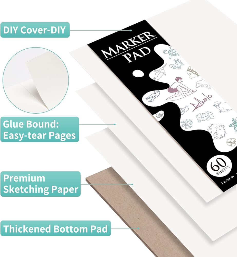 【لوحة علامة صانع صانع النزيف】 هذه ورقة علامة 90 رطل/150GSM لها سطح مسطح ناعم يمنع النزيف من أجل العمل الفني النظيف ، يمكنك أن تلعب على مواهب الرسم الخاصة بك. يمكن للورق الأبيض الطبيعي حماية العيون وتخفيف التعب.
