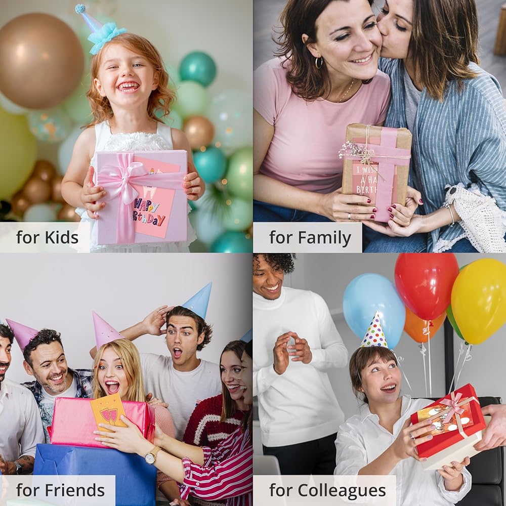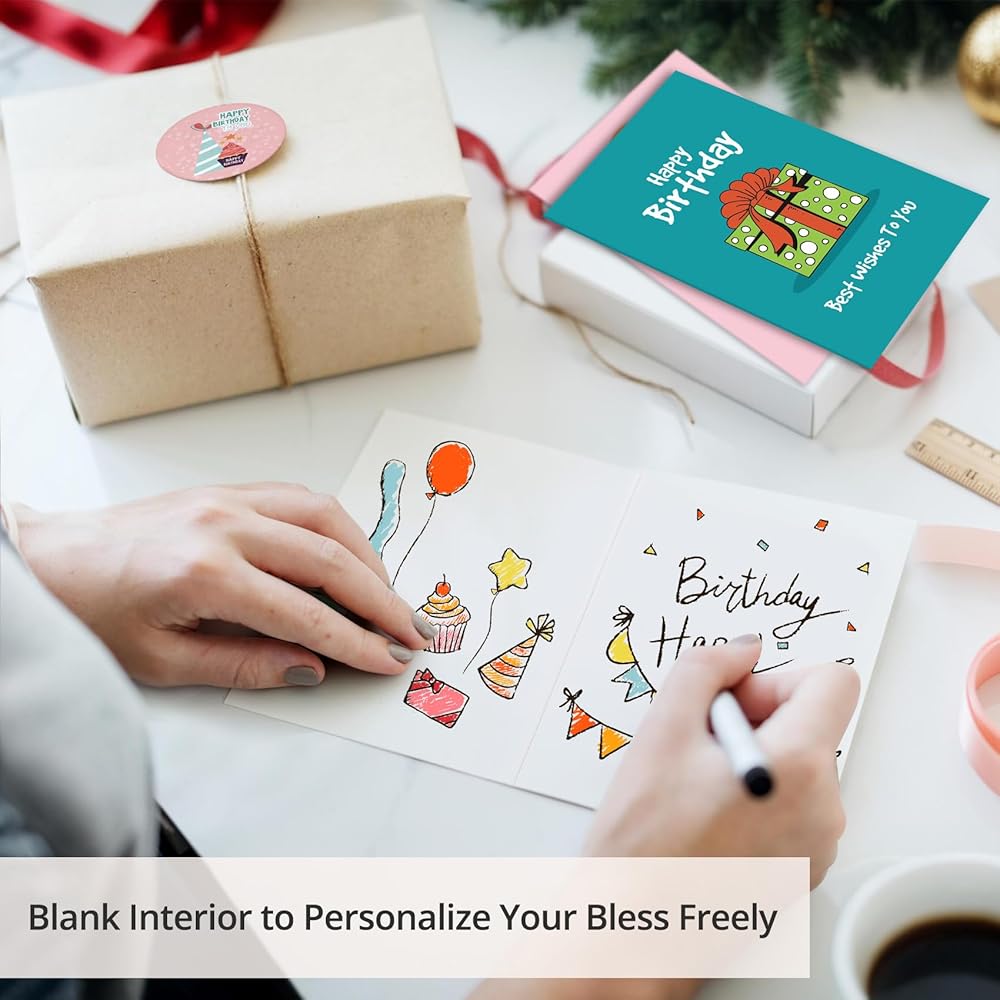 متعدد الاستخدامات وشخصية: مع صفحات داخلية فارغة ، توفر بطاقات عيد ميلادنا السعيدة إمكانيات لا نهاية لها للشخصية. اكتب رسائل مخصصة أو رسم الرسوم التوضيحية أو إضافة عناصر زخرفية لتناسب ذوق المستلم وشخصيته. سواء بالنسبة للأطفال أو الأصدقاء أو العائلة أو الزملاء ، يمكن تصميم كل بطاقة لنقل مشاعرك الفريدة.