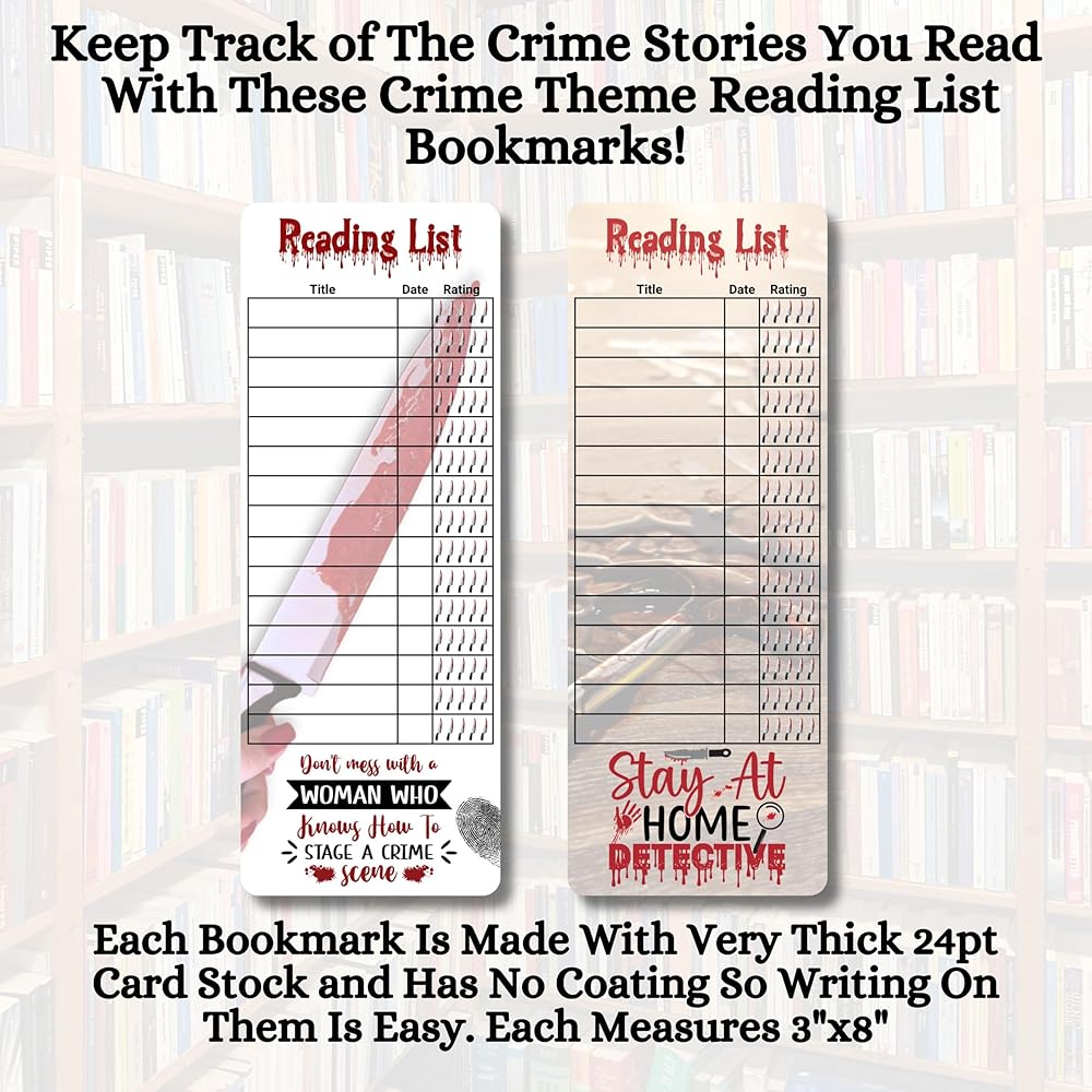Versatile: Universal size fits most books and makes an ideal gift for crime fiction and true crime enthusiasts. Whether you like murder stories, or fantasy crime novels, these book markers are great for keeping track of what you read.