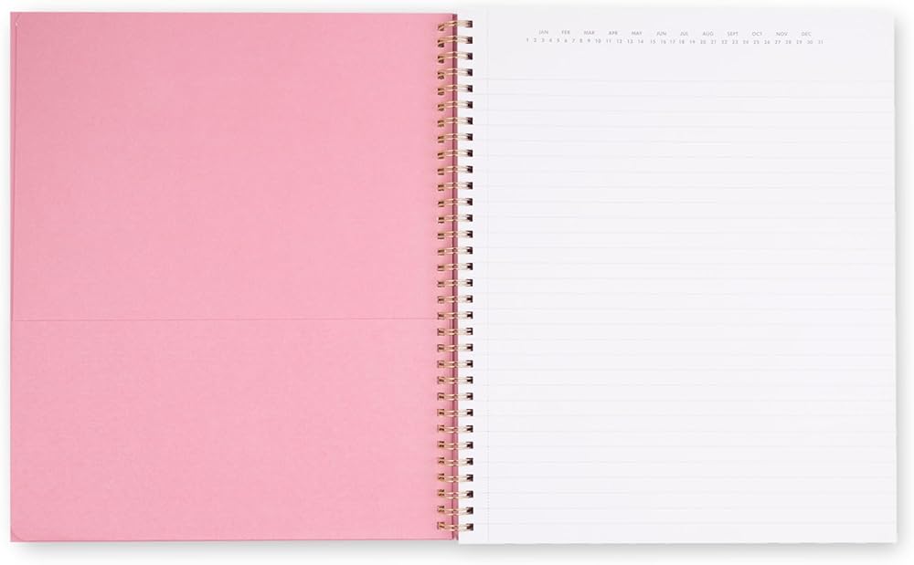 kate spade new york large notebook journal with college ruled notebook paper. Spiral bound notebook includes 160 lined pages and an interior pocket for storing loose notes. Kate Spade's aesthetic notebook measures 11 inches (28 cm) by 9.25 inches (23 cm). With a large size and 160 pages, this notebook college ruled is great to use as a meeting notebook, travel journal, or a writer's notebook so you can put a little pep in your work day, study session, or musings. This spiral journal notebook is fit to hold your lists, ideas and doodles, and will pack a punch next to your floral skirt.