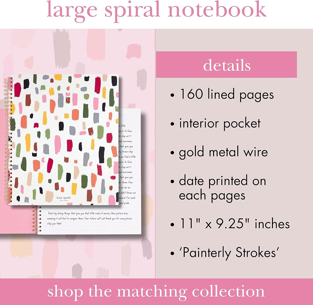 حكمت Kate Spade New York Large College دفتر ملاحظات ، 11 "× 9.5" دفتر حلزوني مع 160 صفحة ، السكتات الدماغية الرسمية