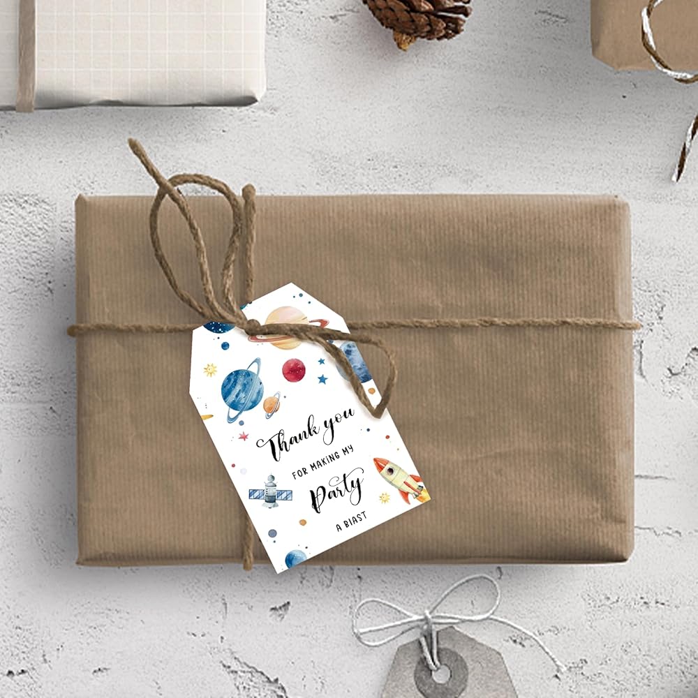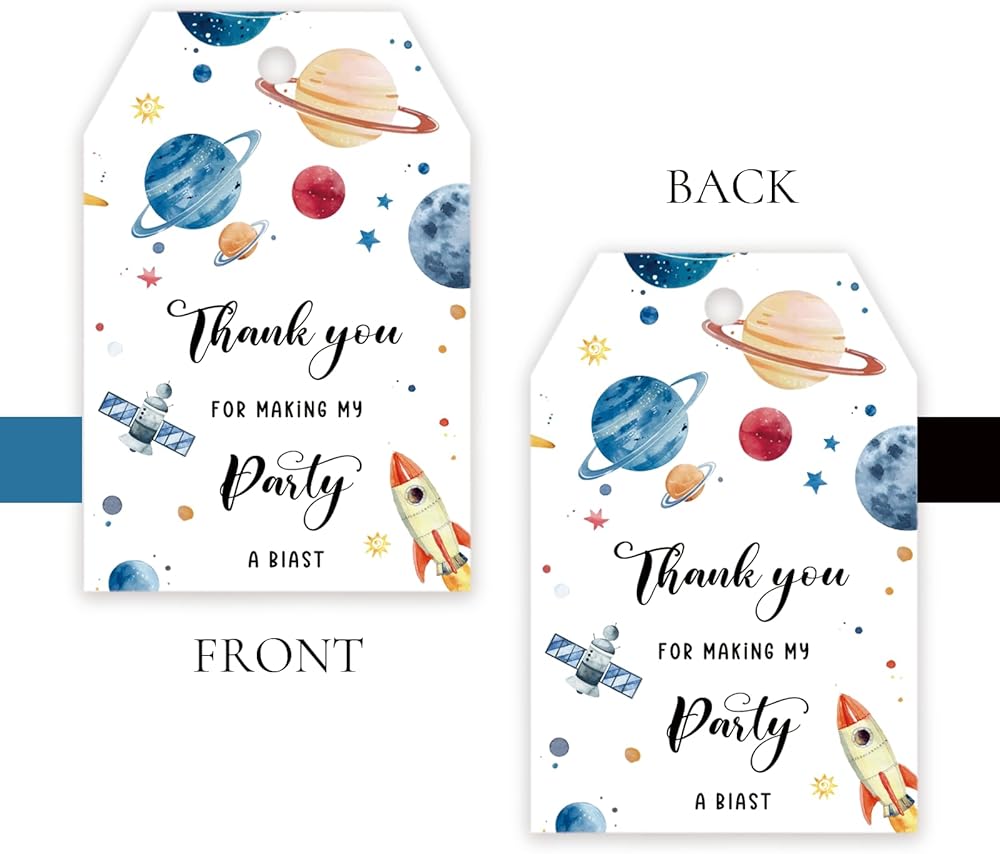 OUTER SPACE THEMED PARTY FAVOR TAGS APPLIACATION 🚀 : This thank you tag is the best choice for most people that can used not only as a party favor, but also as a gift tag to your friends birthday / space themed party and so on.