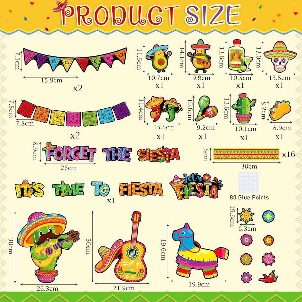 • What Can You Get: the package comes with 16 sets Mexican Fiesta bulletin board decoration sets, come with 4 sheets of adhesive dots, sufficient quantity and complete combination to meet your Mexican Cinco De Mayo classroom and home decoration to create a completely festive atmosphere