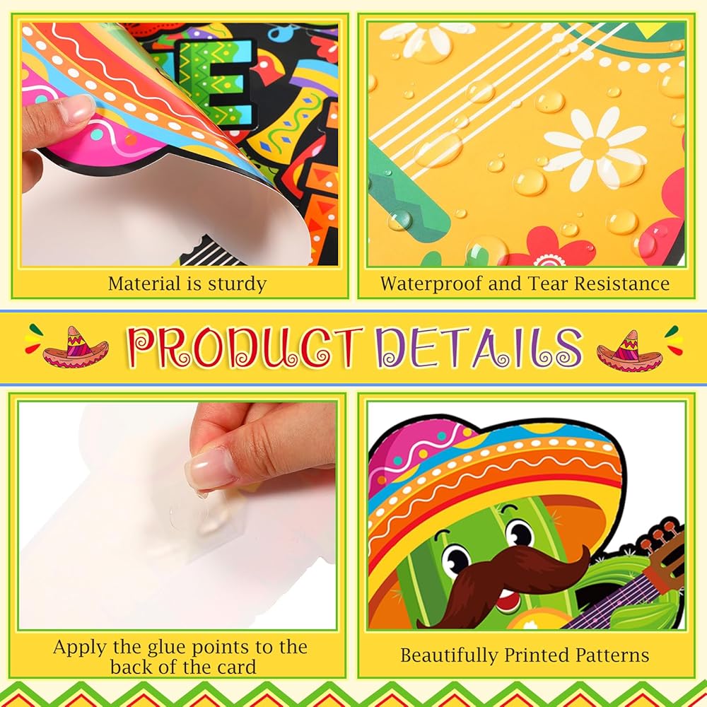 • Mexican Theme Design: these Mexican party cutouts decorations are designed with Mexican Fiesta festive elements, like cactus, guitars, skulls, straw hats, tacos, chili, alpaca, [Let's Fiesta] and so on, delicate, create a stronger atmosphere for the festival, very suitable for your Mexican party decoration