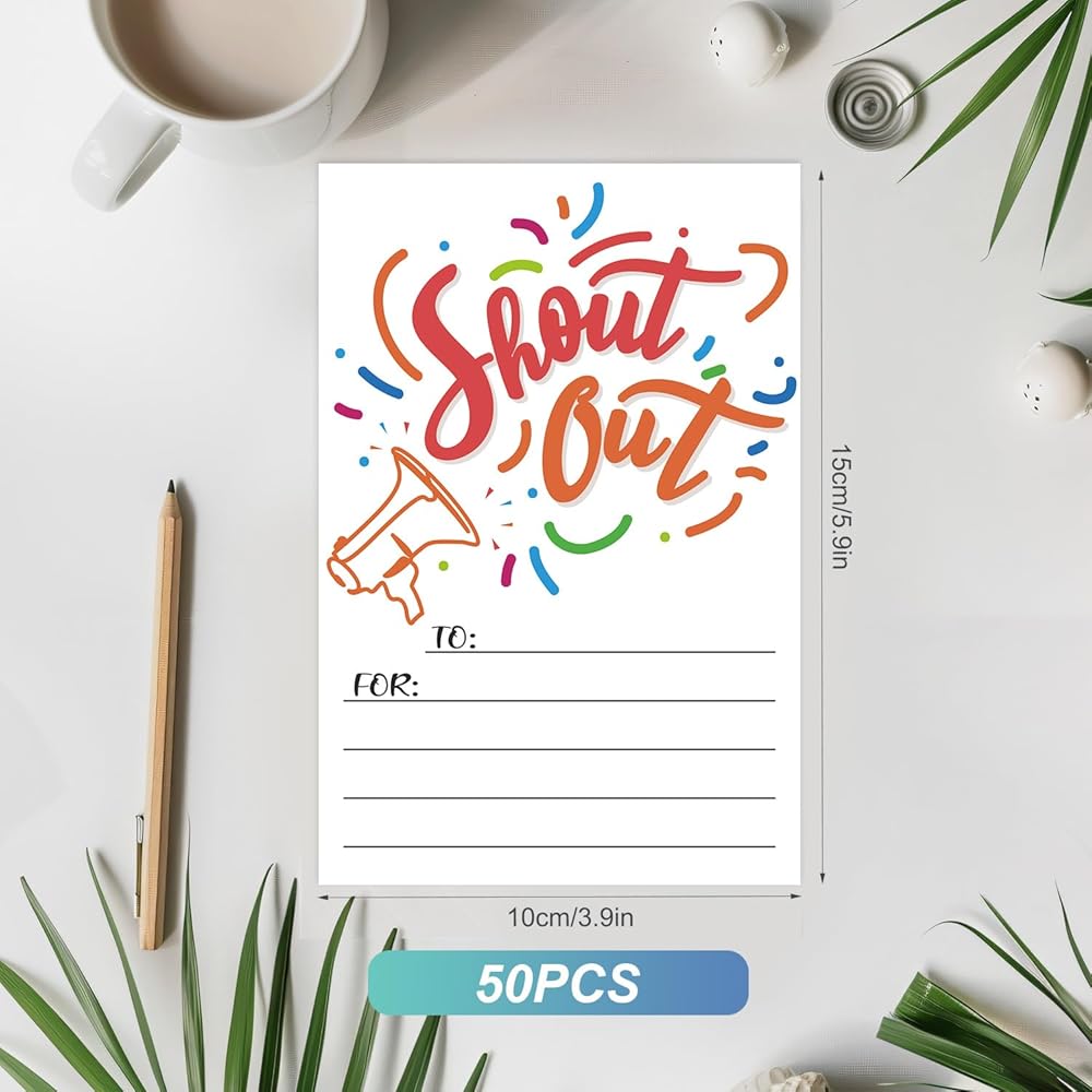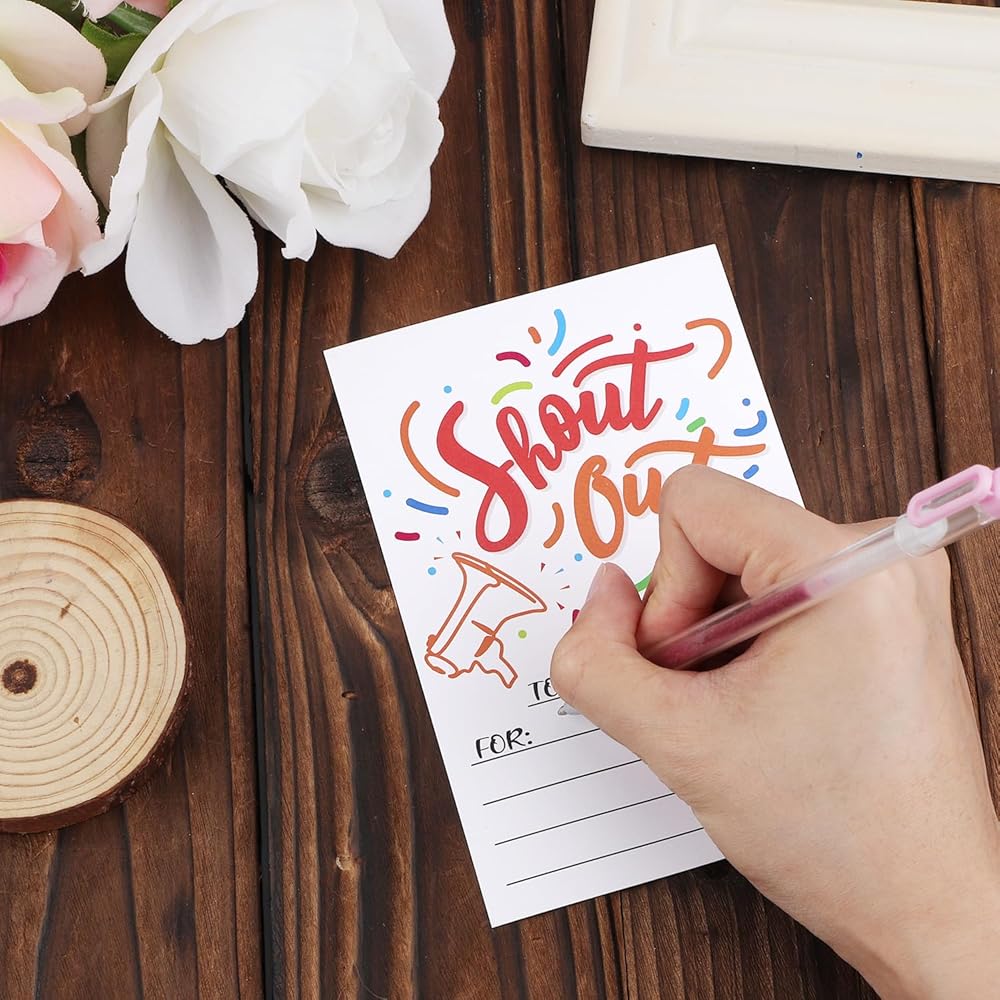 Product Content: You will receive 50 pieces of shout out cards, stylish and with sufficient quantity to meet your needs of usage. You can write your heartfelt words on them and give them to your friends or families whom you want to show your appreciation to.