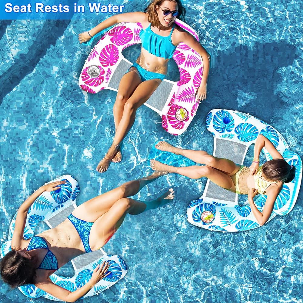 Comfortable Seat Cushion And Backrest: Inflatable pool float chair with breathable mesh seat cushion keeps your body cool and comfortable while lounging in the water; The inflatable backrest provides greater comfort and stability in the water
