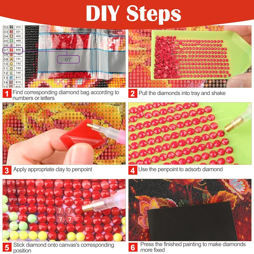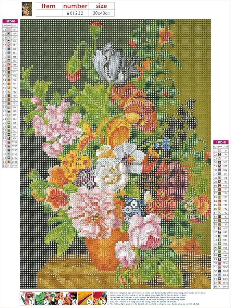 مجموعات الطلاء MXJSUA Diamond للبالغين ، مجموعة من الأزهار اللوحات الفنية الماسي مجموعات للمبتدئين ، مجموعات طلاء فن الماس الكاملة من الماس ، Diamond Dots Bead بأرقام أرقام 12x16 بوصة