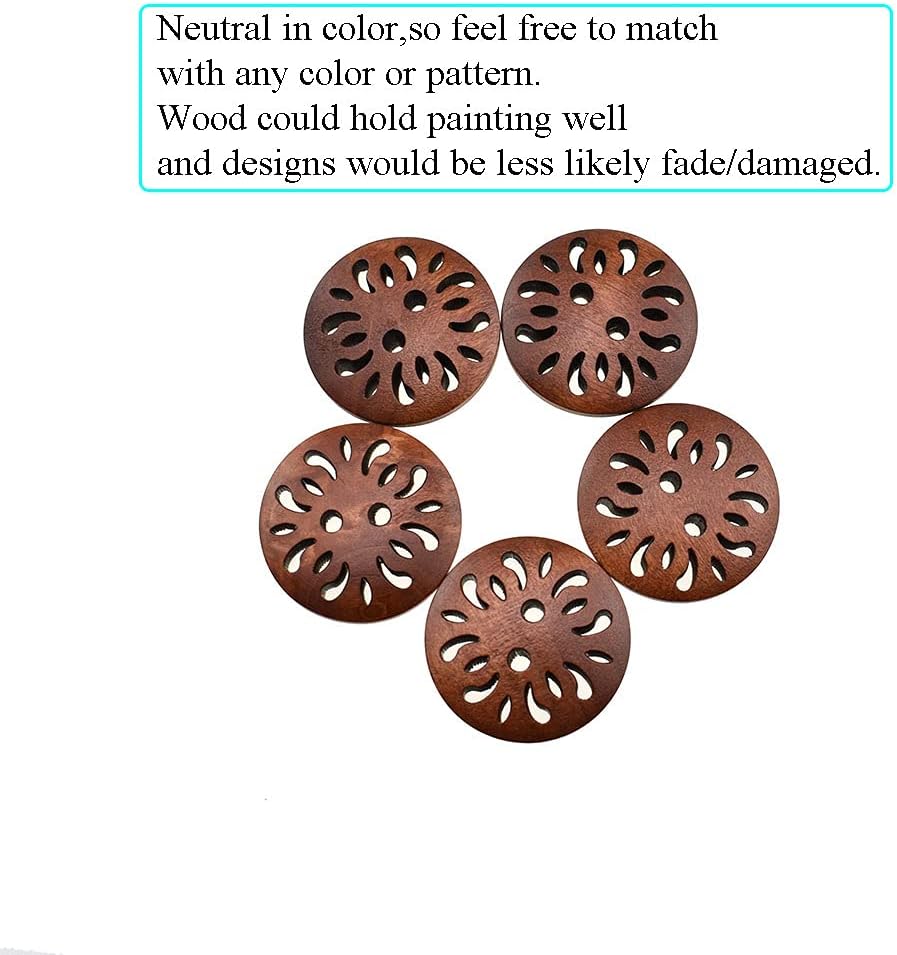 Neutral in color:The buttons are neutral in color,so feel free to match with any color or pattern.Being wood means they are easy to paint with your favorite color.Good to use on something that will need washing or would get wet frequently,as wood could hold painting well and designs would be less likely fade/damaged.You can paint it with a variety of designs & colors.