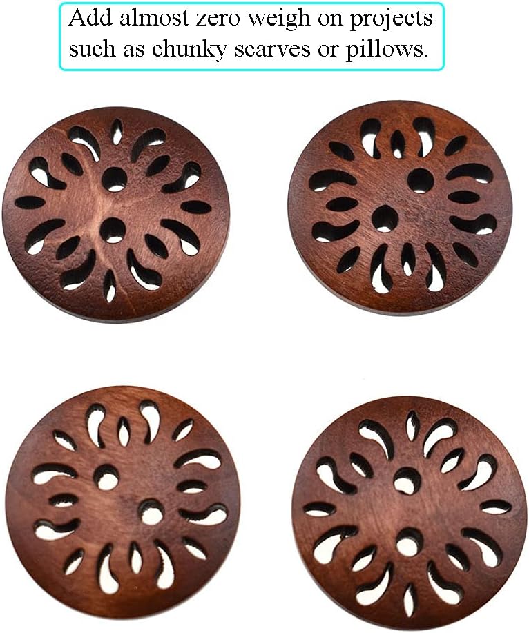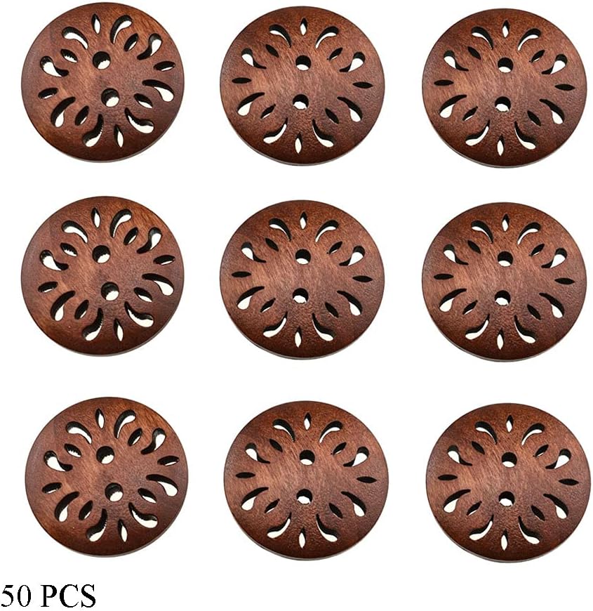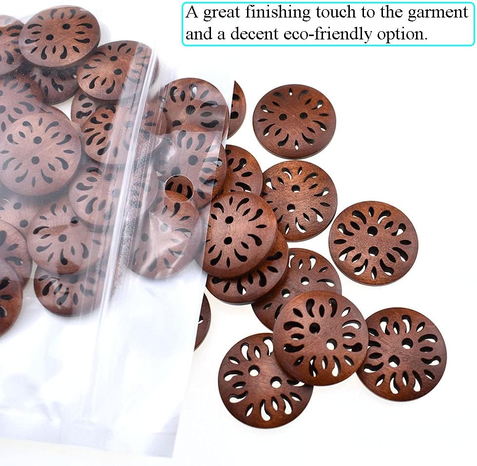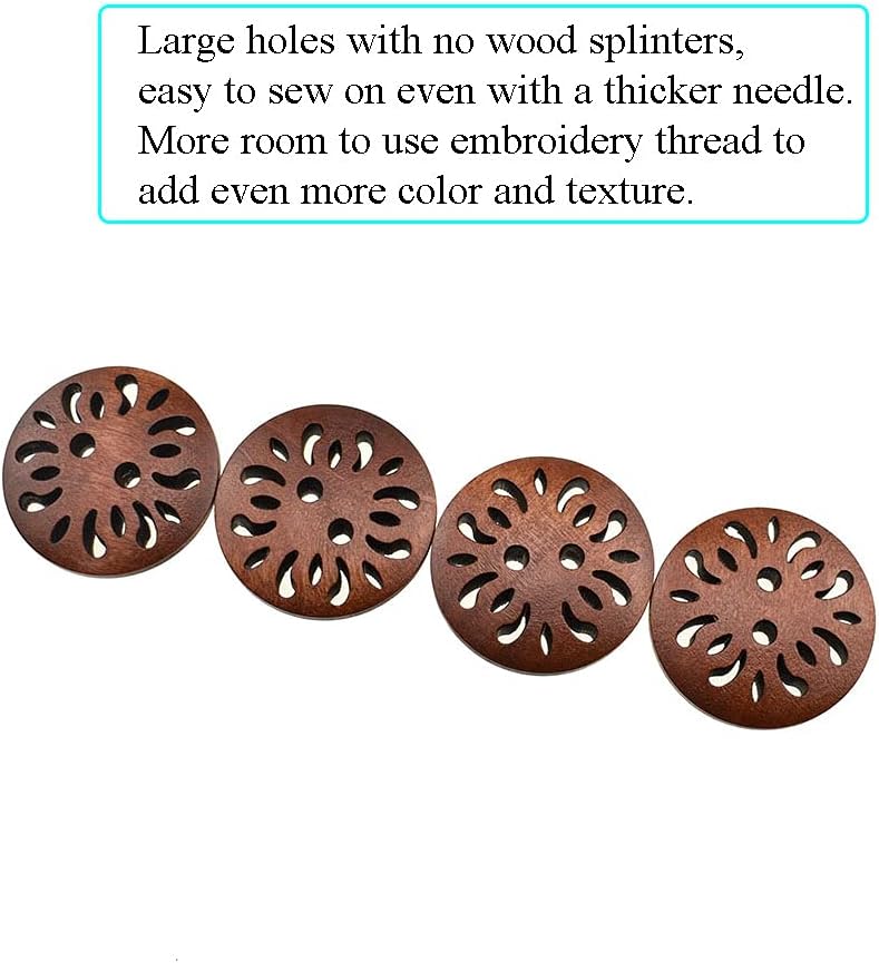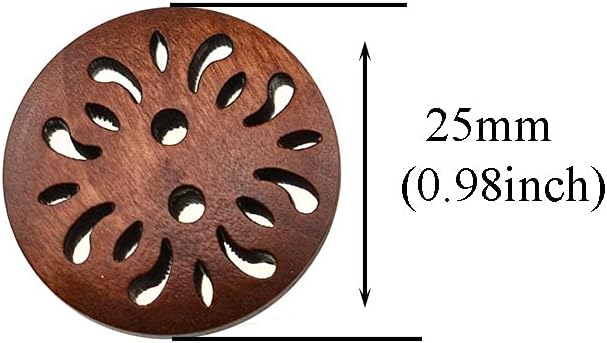 Material:High quality wood Size:Diameter 25mm Color:Brown Package Include:50 pieces wood button These wood buttons are flat and lightweight making them perfect for arts and crafts,larger holes gives you more room to use embroidery thread to add even more color and texture.